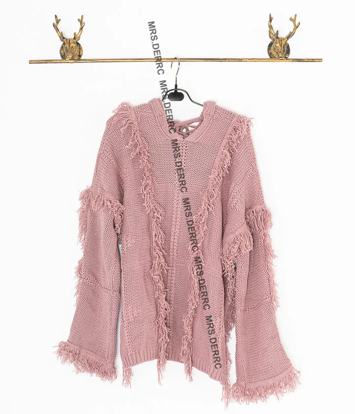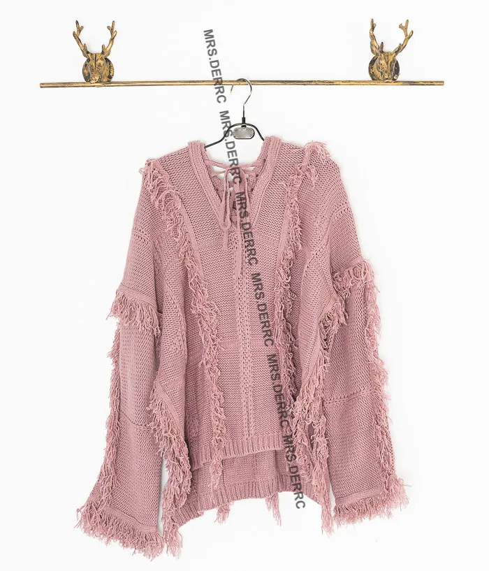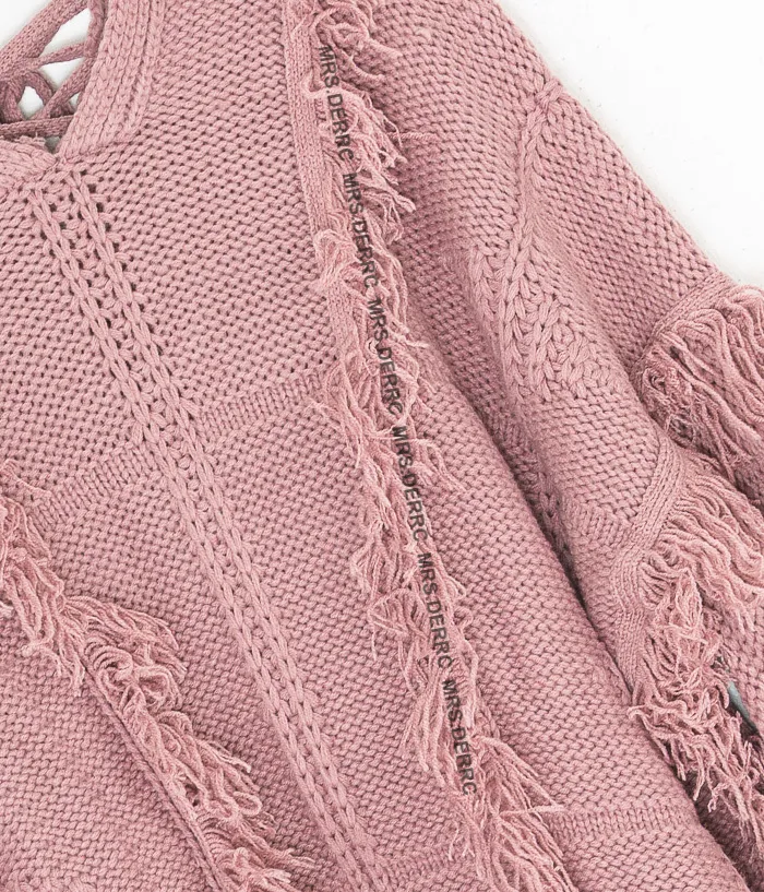 針織綁帶造型寬鬆造型上衣(粉紫)