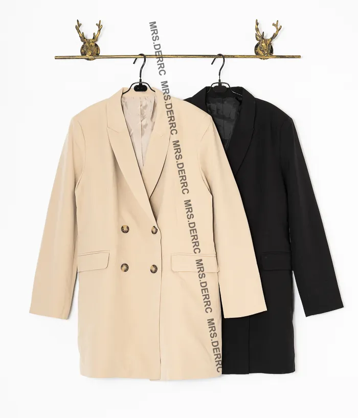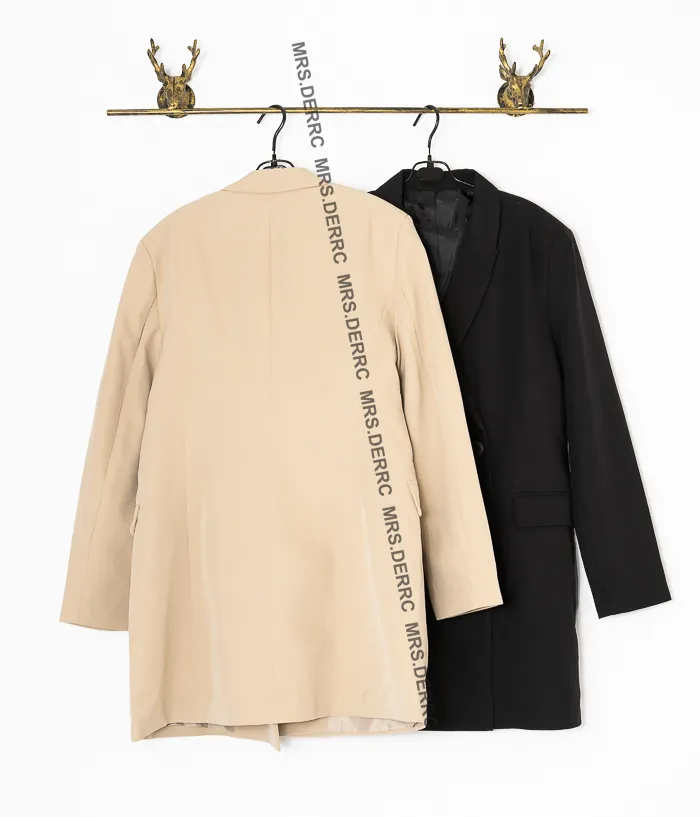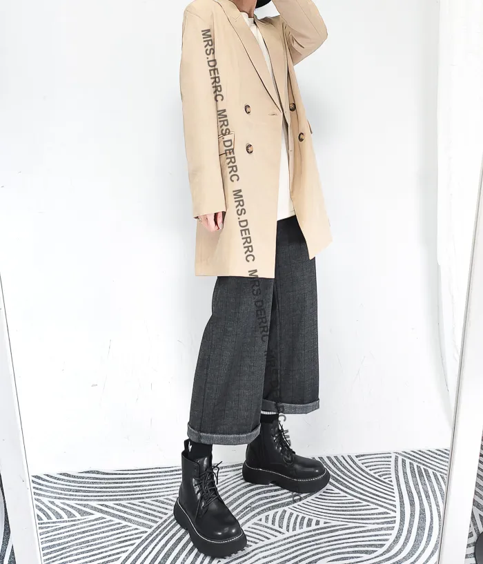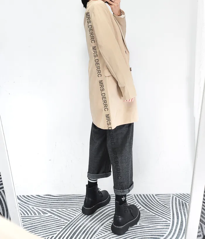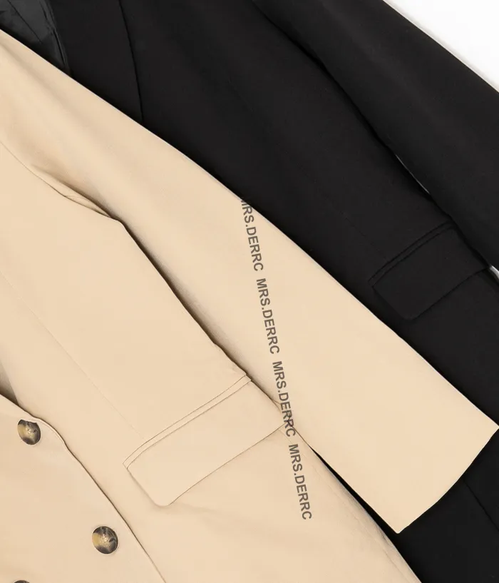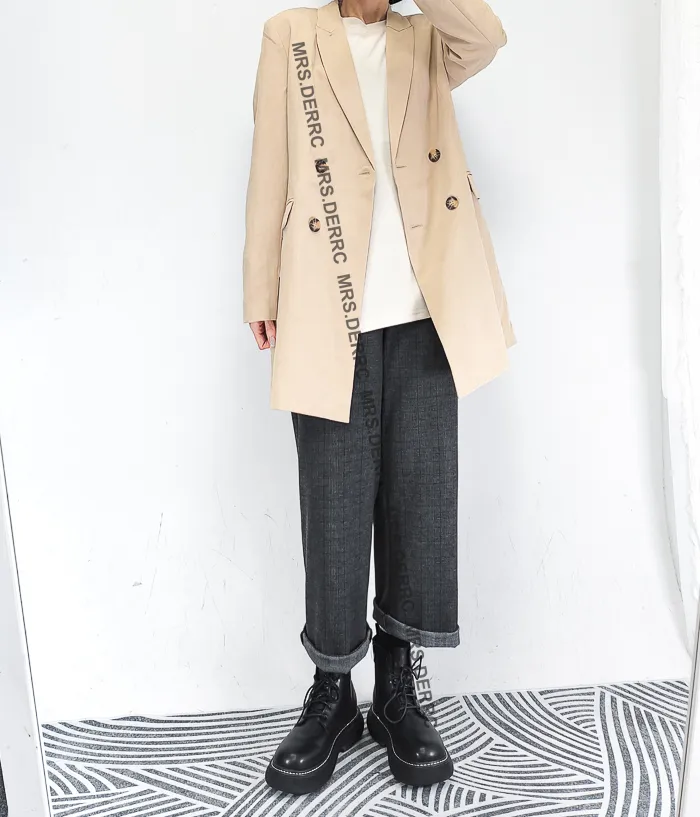 帥氣墊肩西裝四釦口袋外套(卡其)
