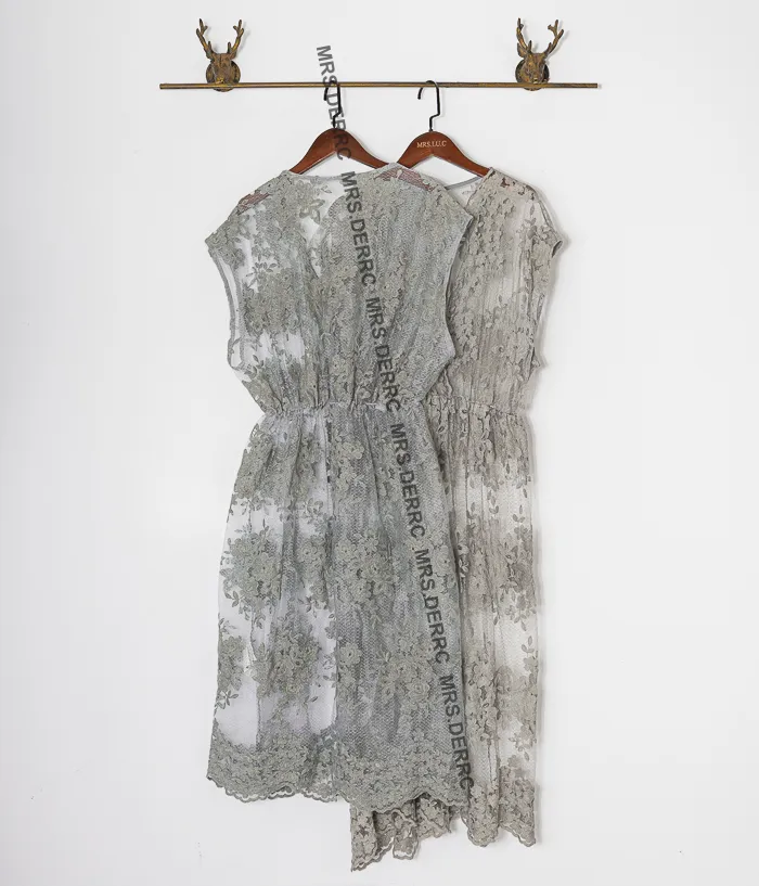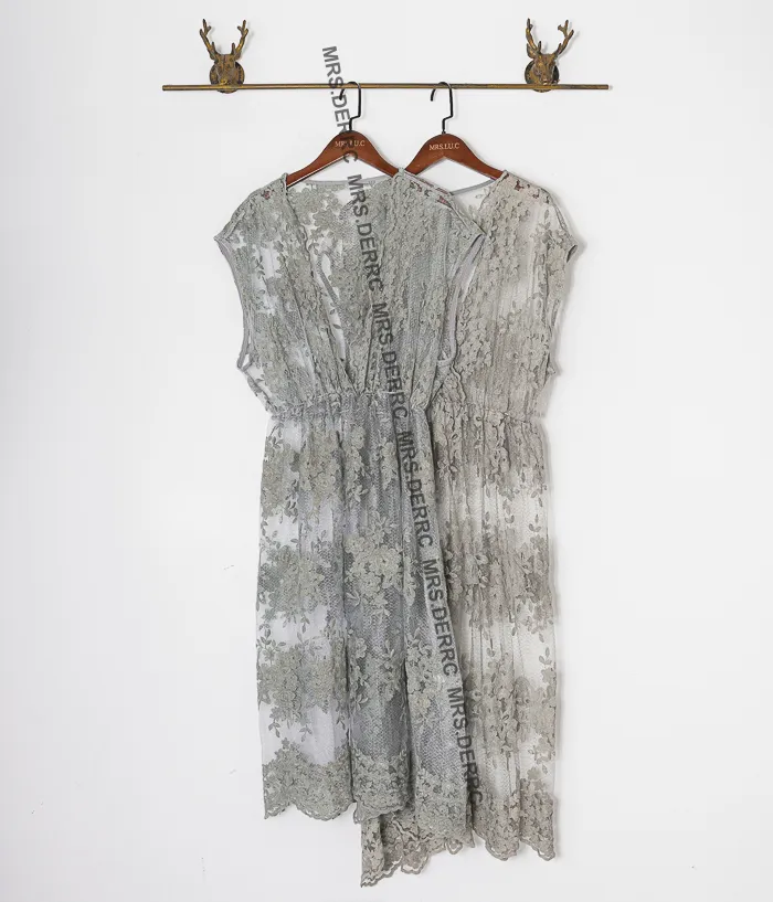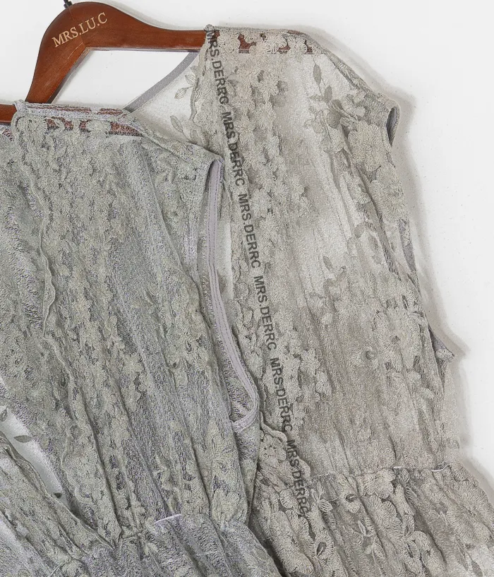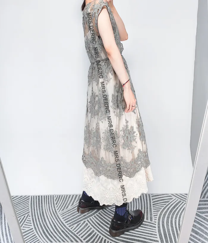 網紗刺繡V領鬆緊腰長背心-需內搭(灰色)