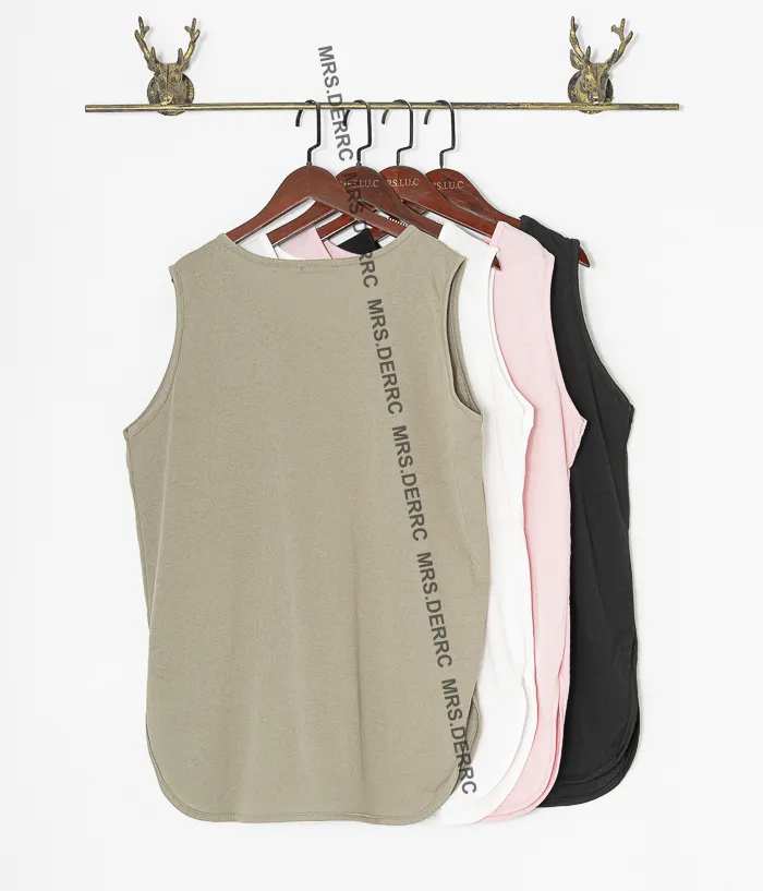 棉混紡字母圓弧下擺背心(四色)