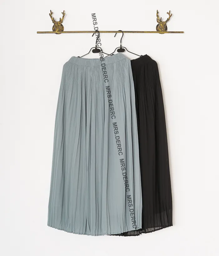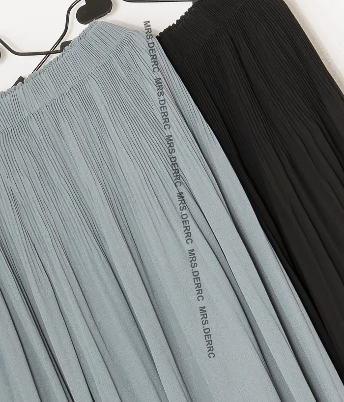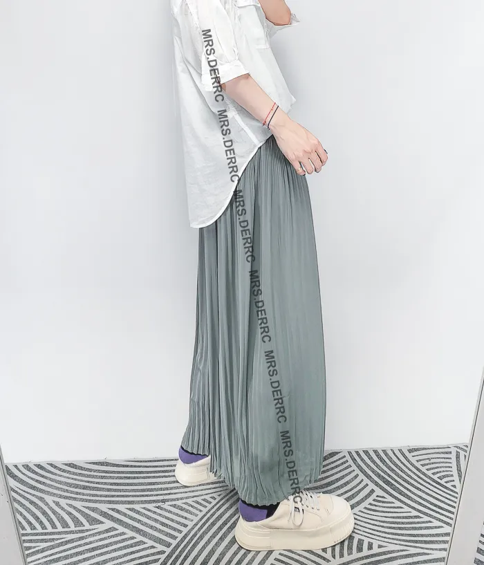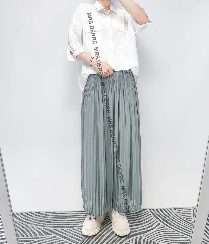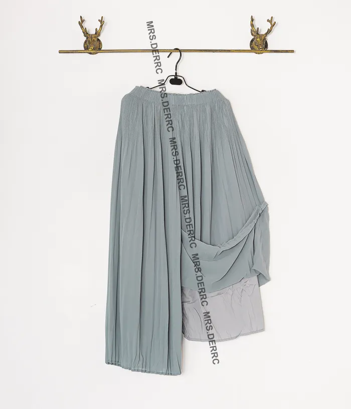 棉混紡氣質垂墜雙層百褶寬褲(淺灰藍)