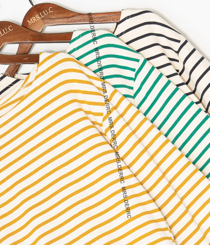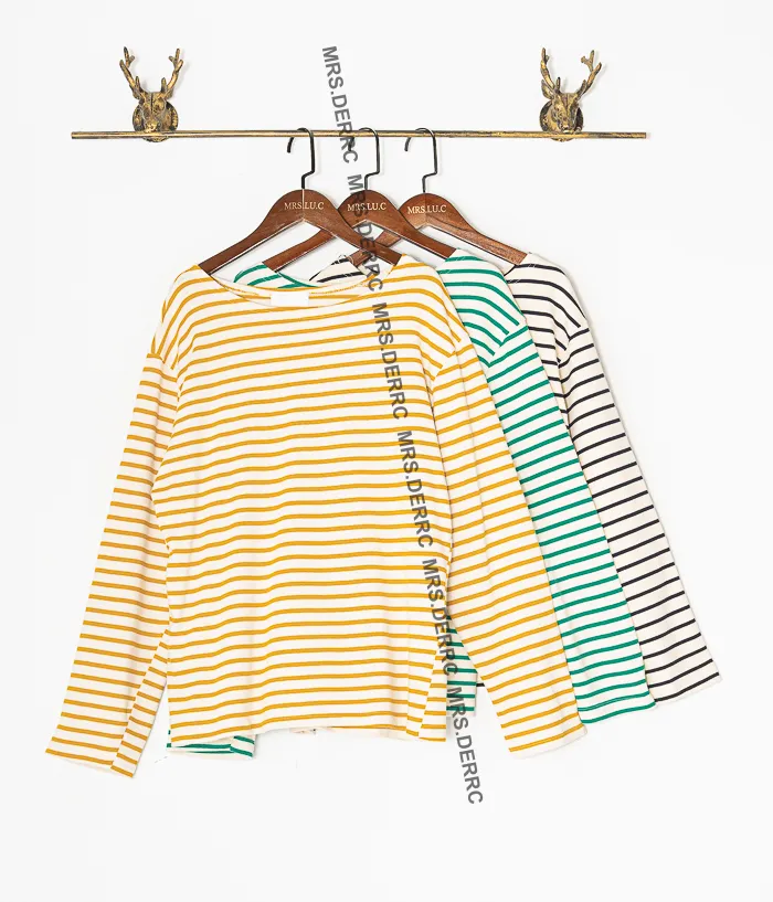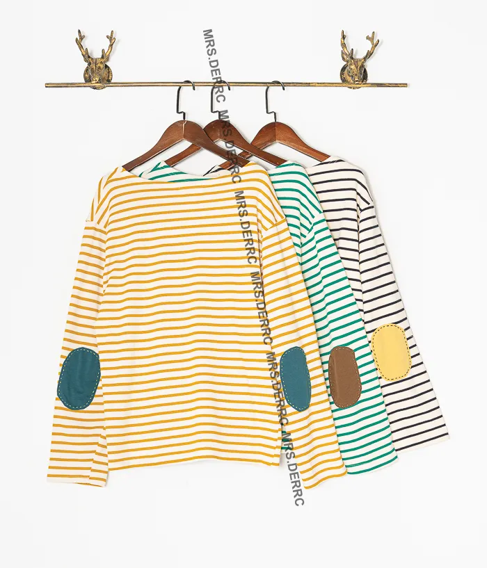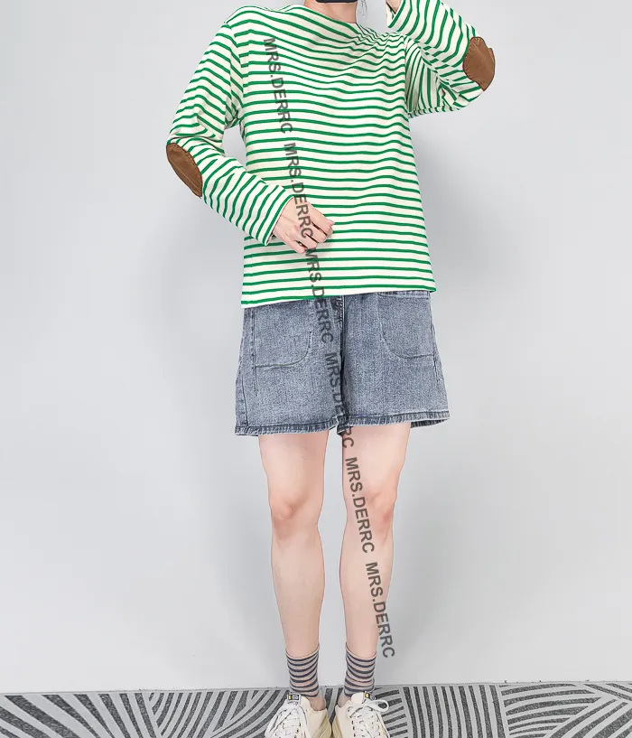 棉質條紋袖補丁上衣(綠條)