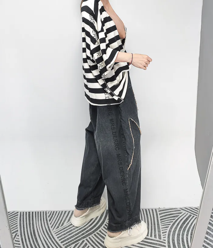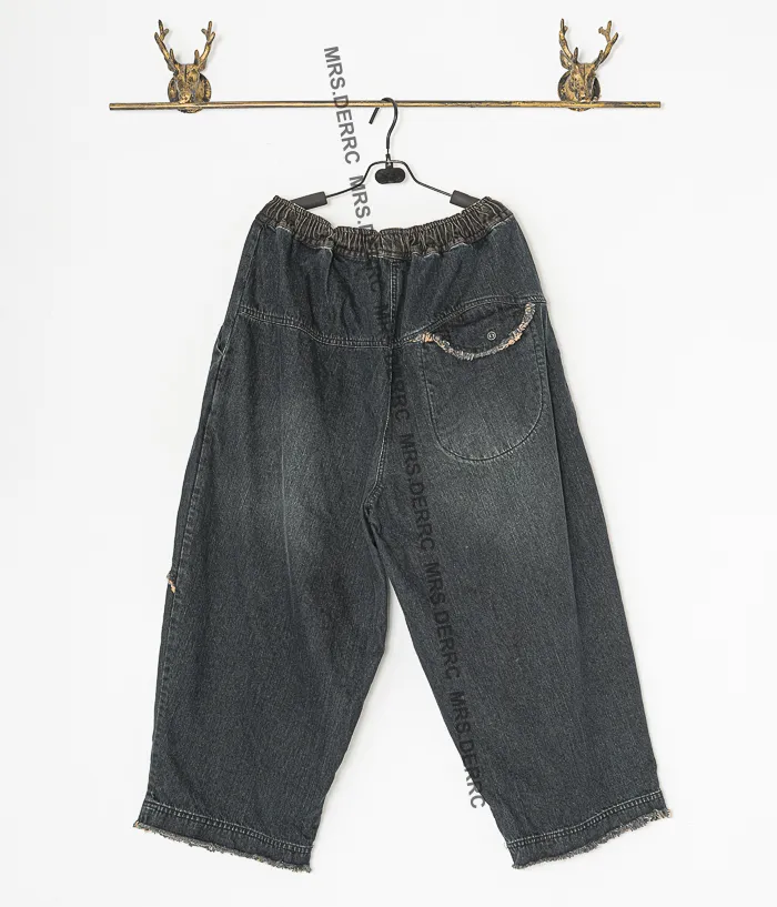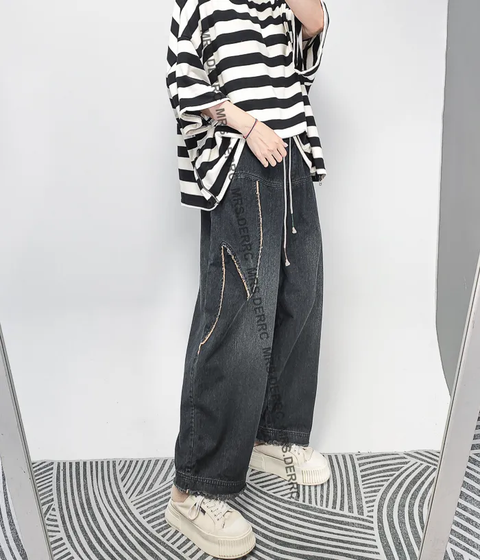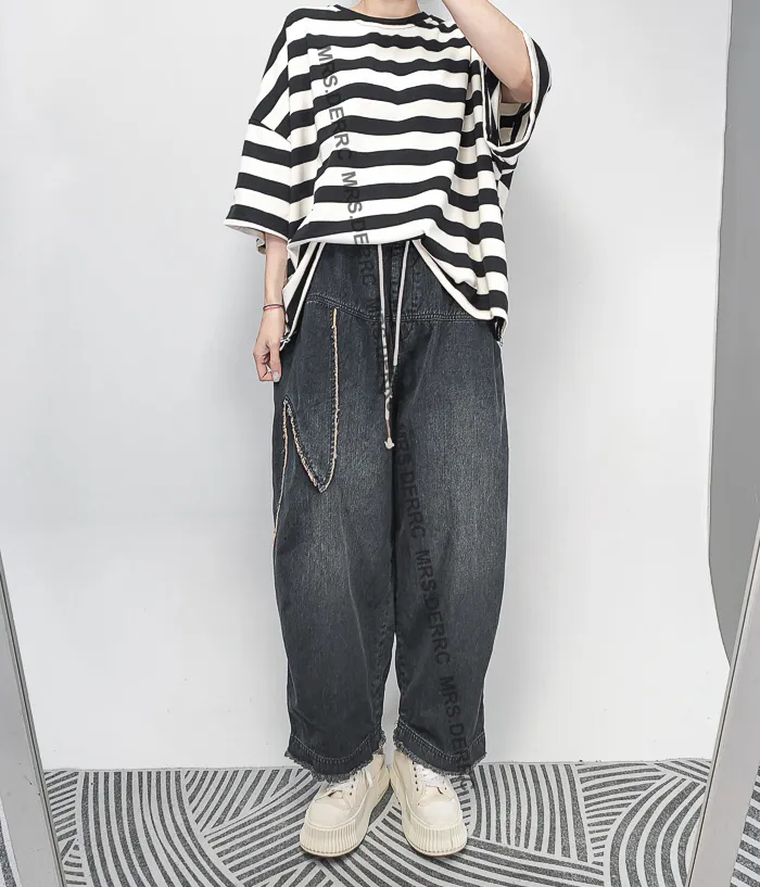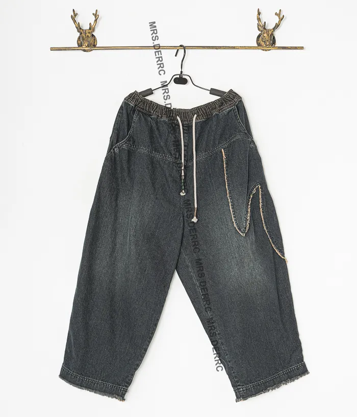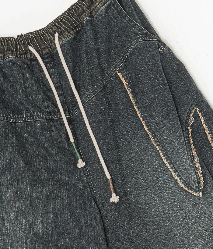 水洗牛仔抽繩拼布造型口袋褲