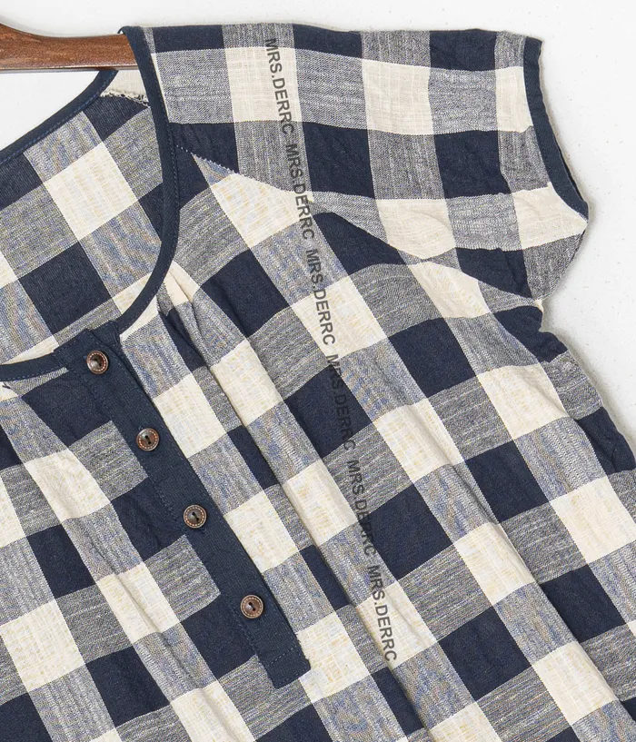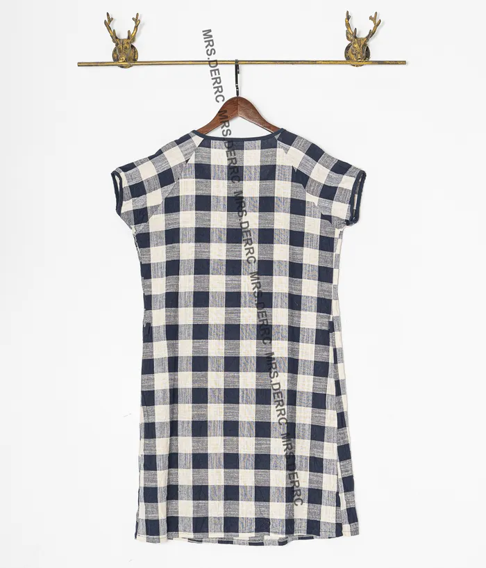 棉混紡領開扣藍米格洋裝