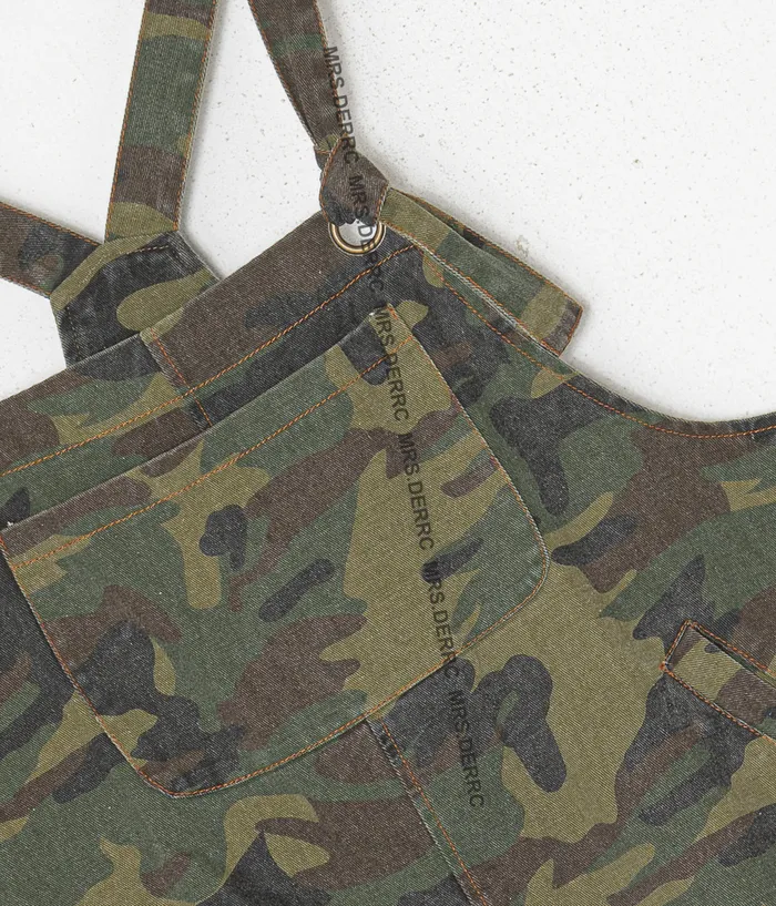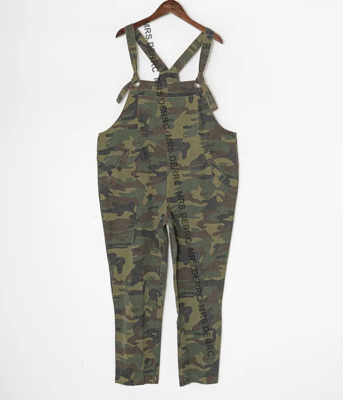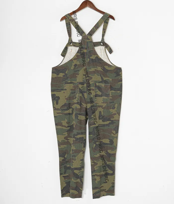 斜紋布綠迷彩肩綁帶口袋吊帶褲