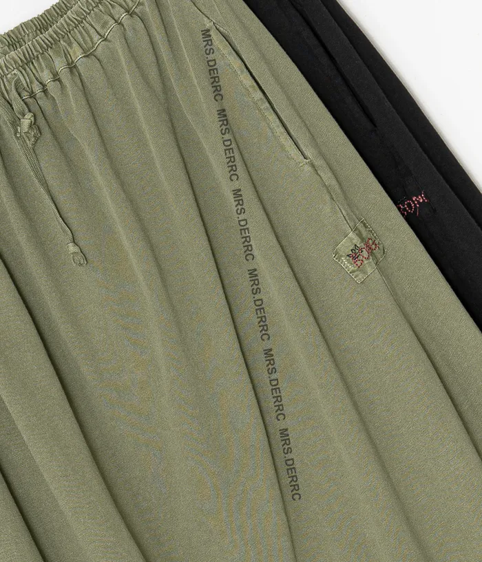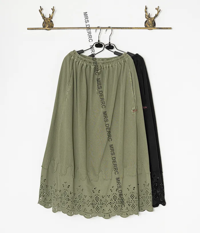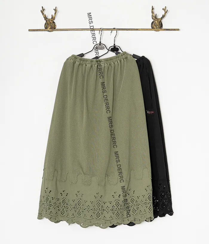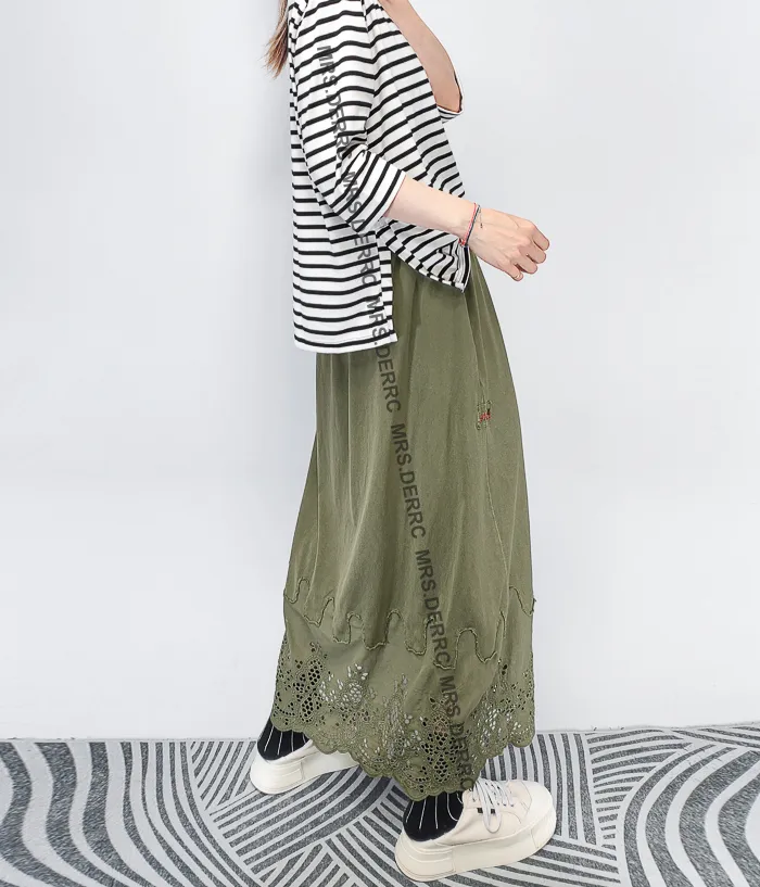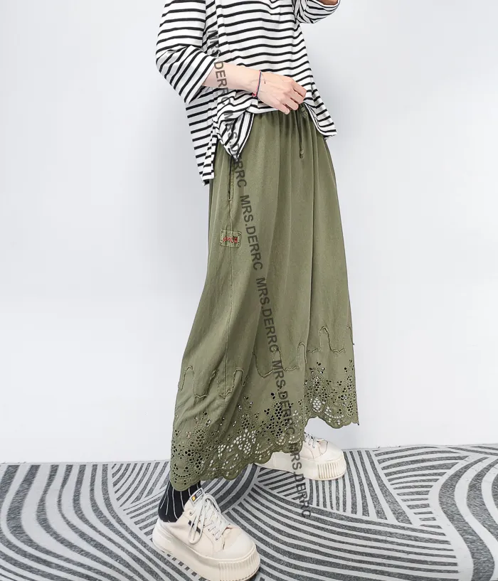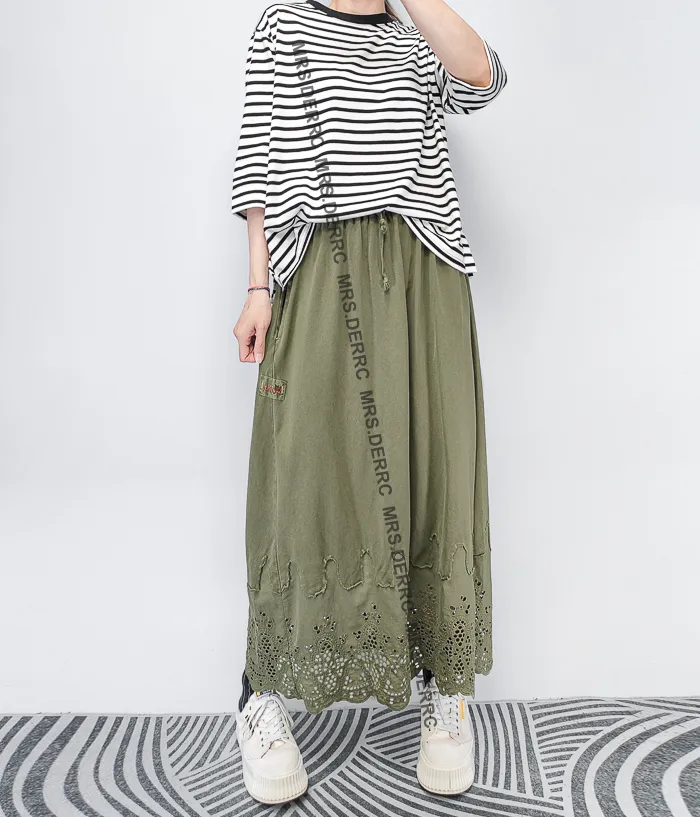 棉質拼接簍空鬆緊腰抽繩口袋裙(綠色)
