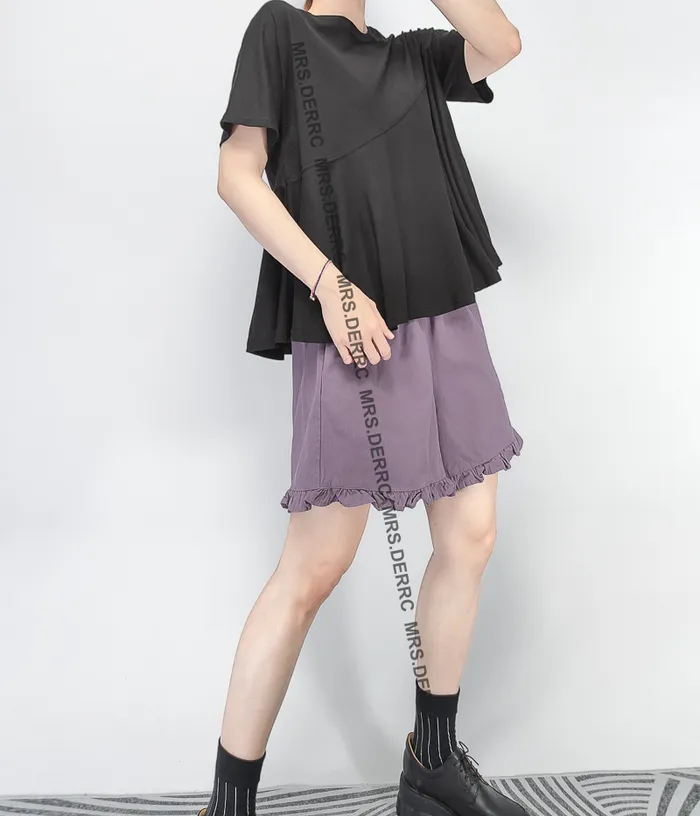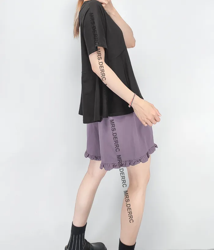 棉混紡斜拼接傘狀上衣(黑色)
