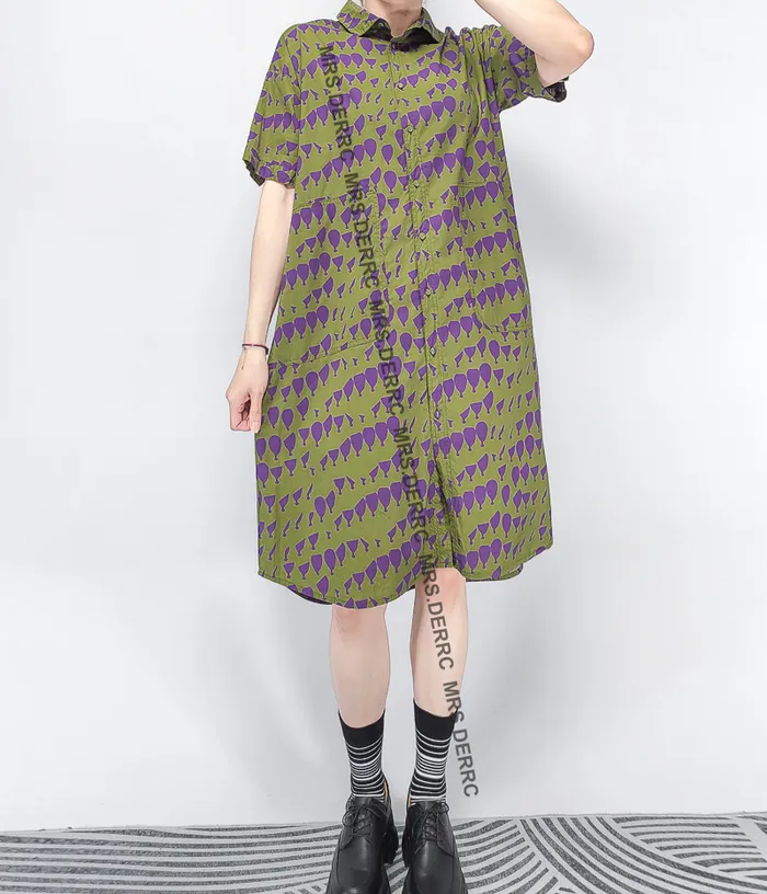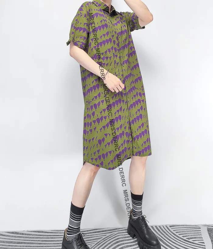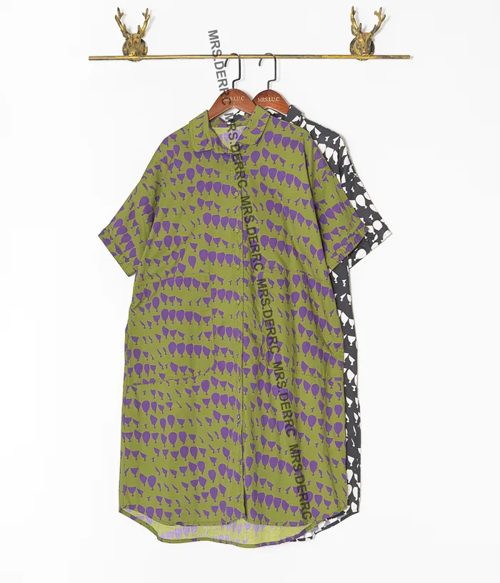 棉質大小瓶子縫線口袋襯衫洋裝(綠色)