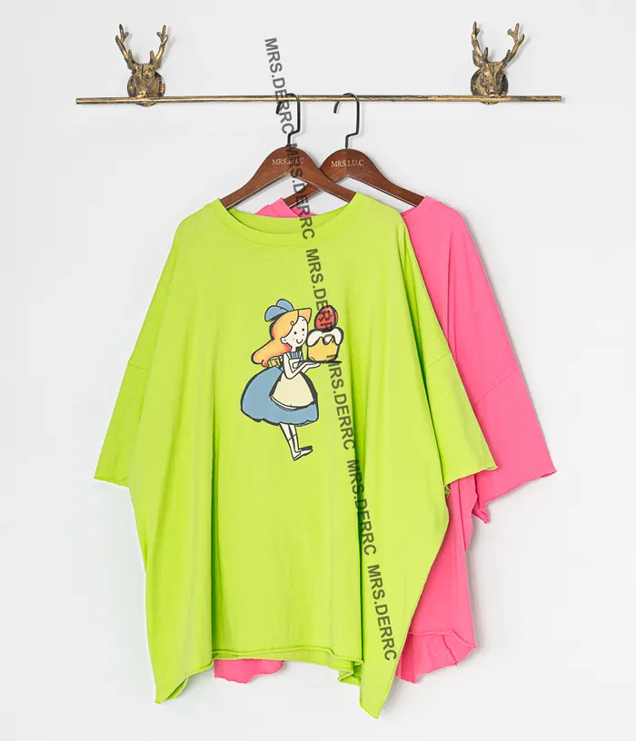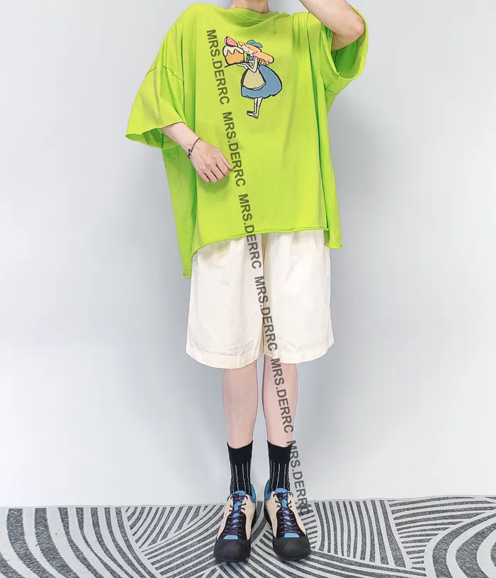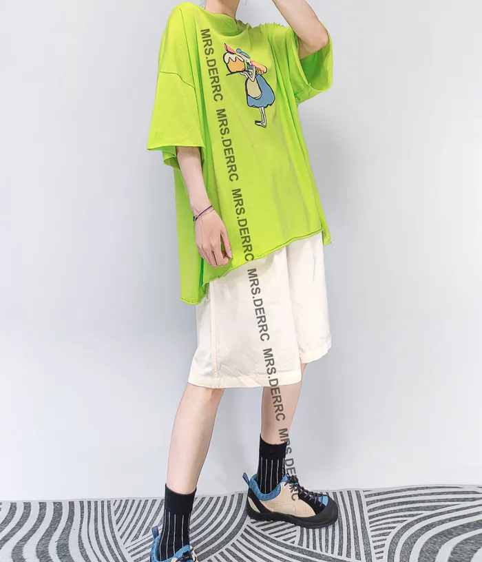 棉質不收邊蛋糕少女寬鬆上衣(綠色)