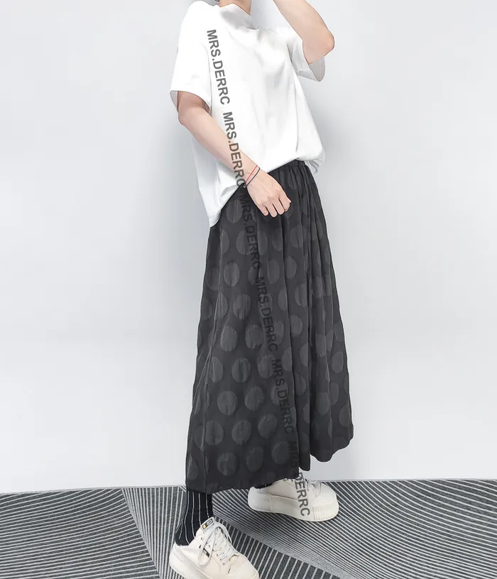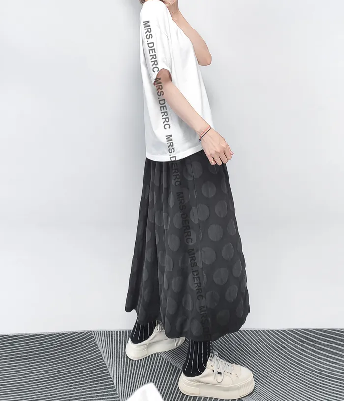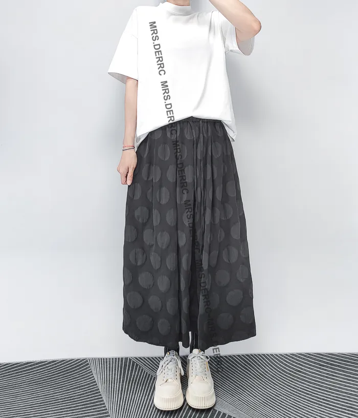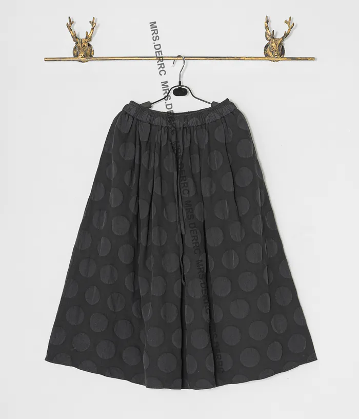棉質織紋凹凸圓點抽繩口袋裙(黑色)