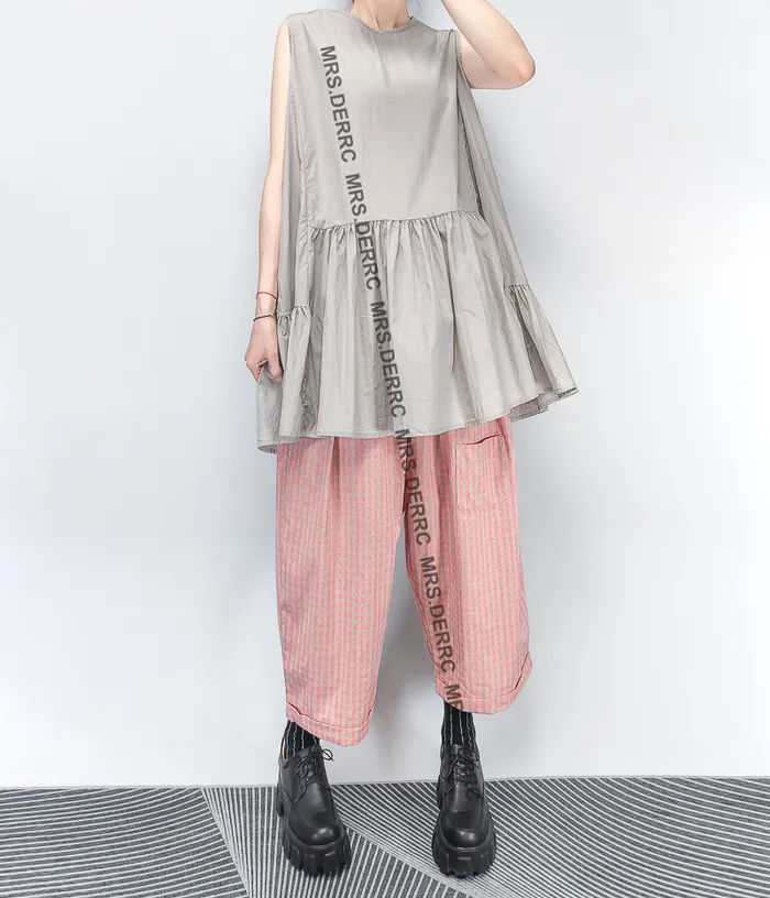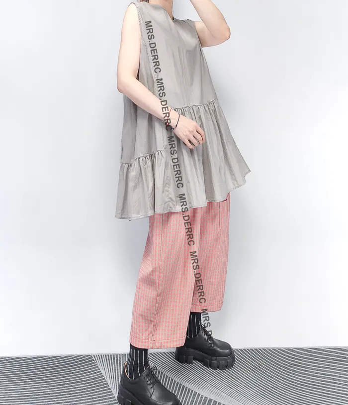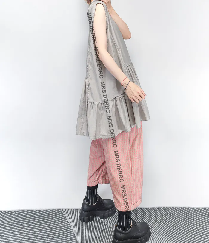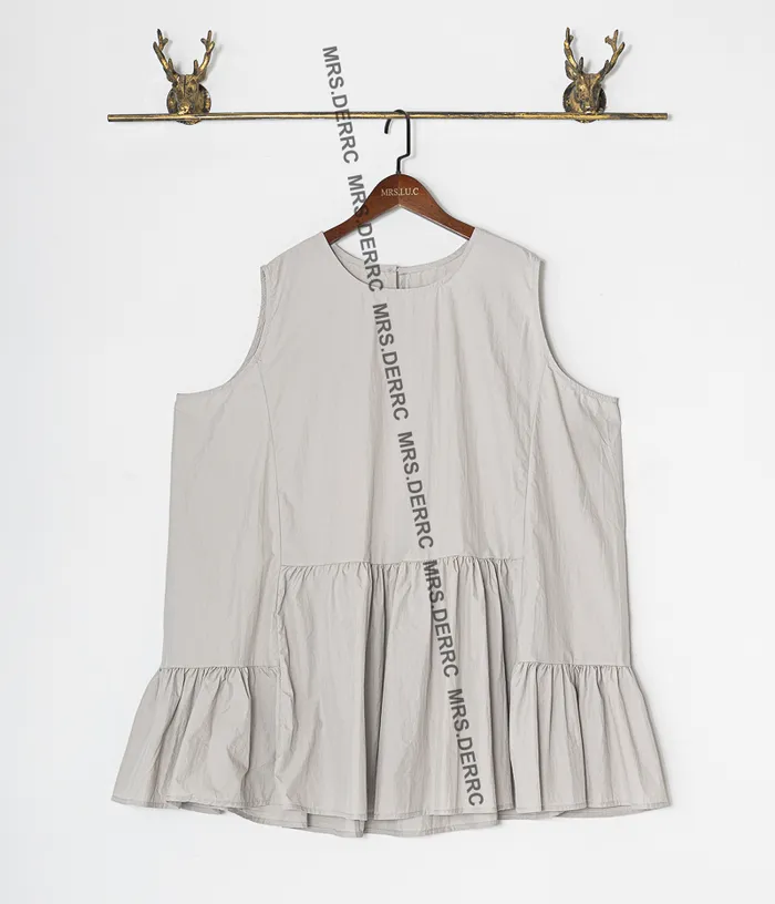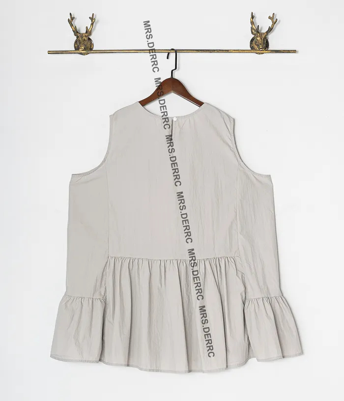 棉混紡後開釦剪裁寬鬆拚接背心(淺灰)