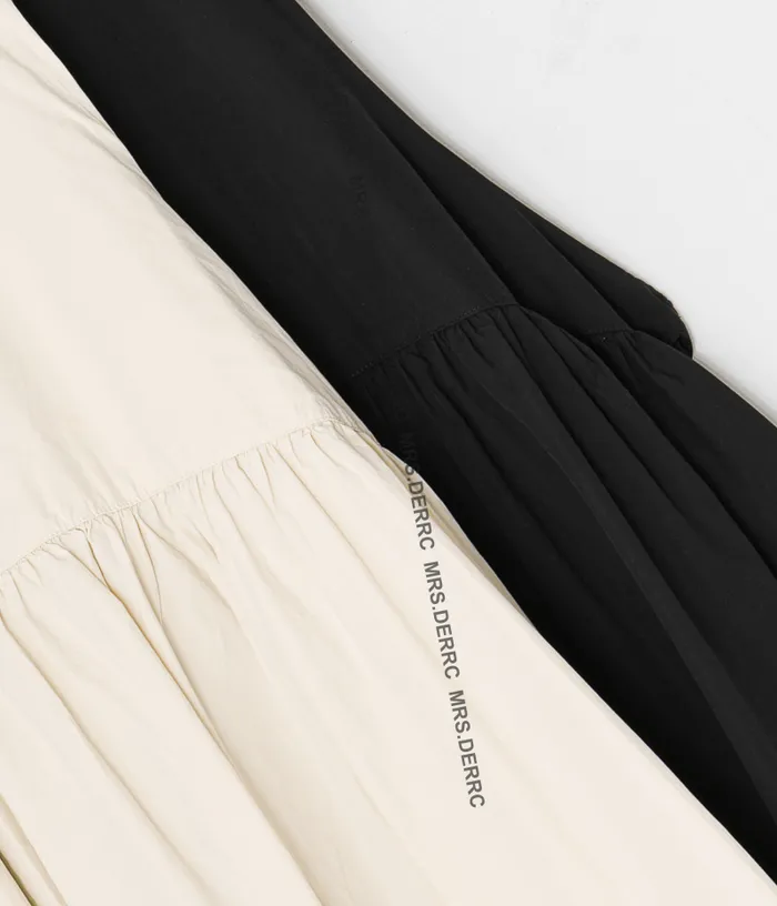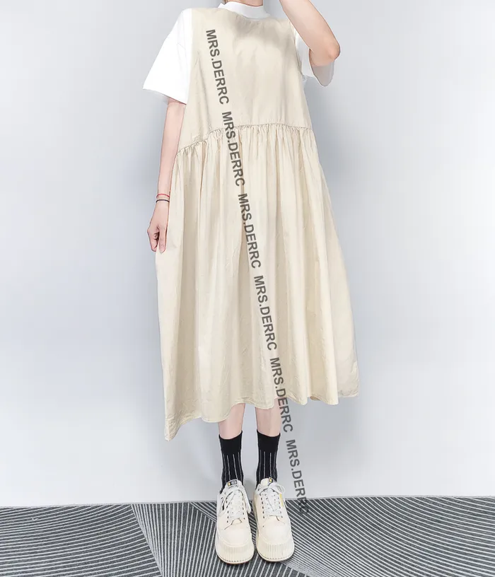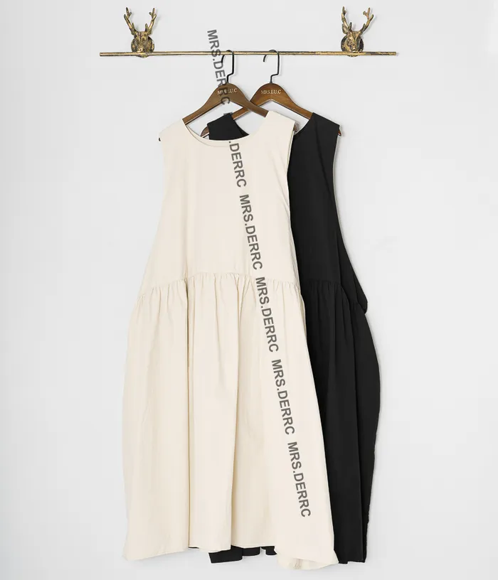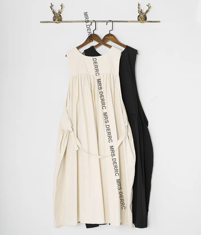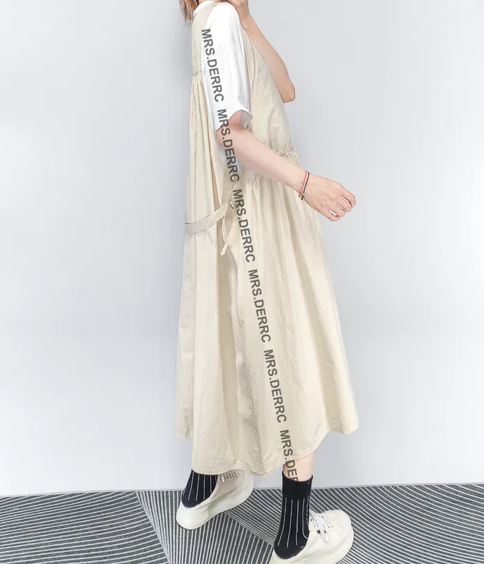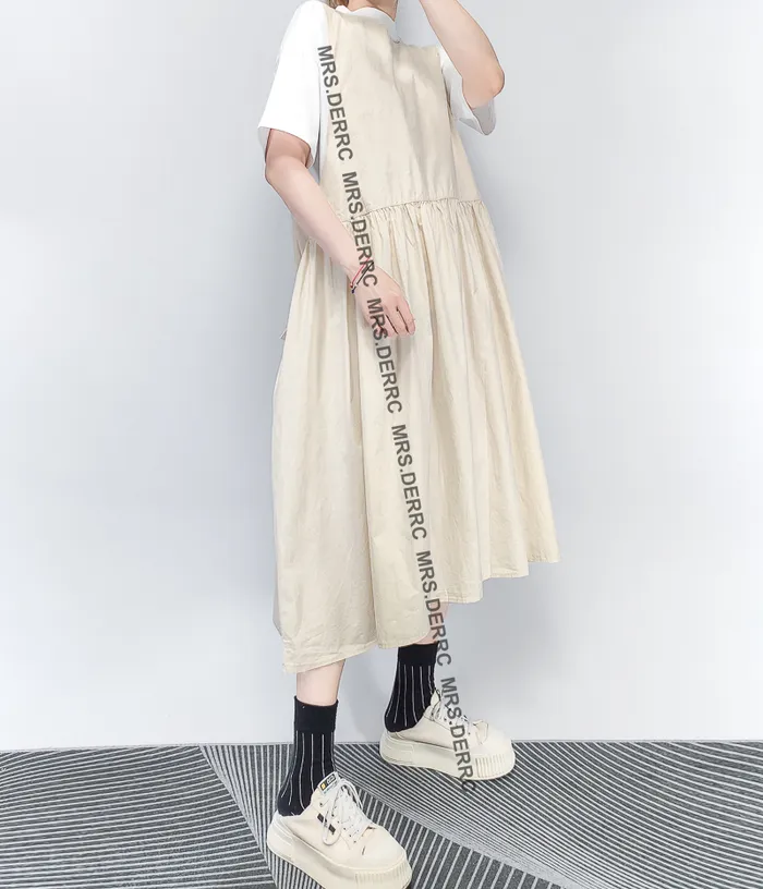 棉混紡寬鬆大裙擺口袋寬鬆背心裙(杏色)