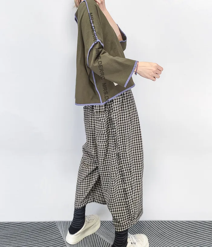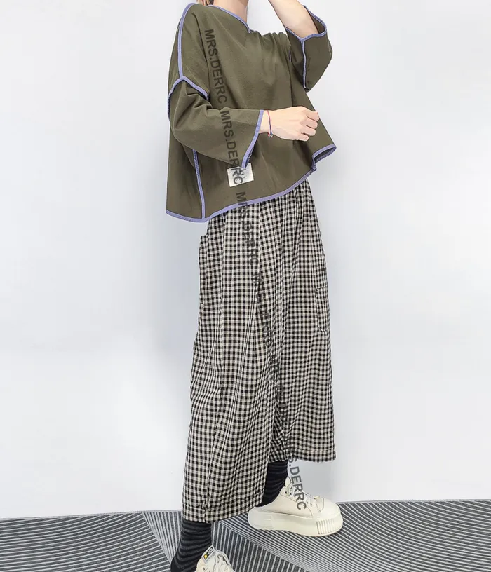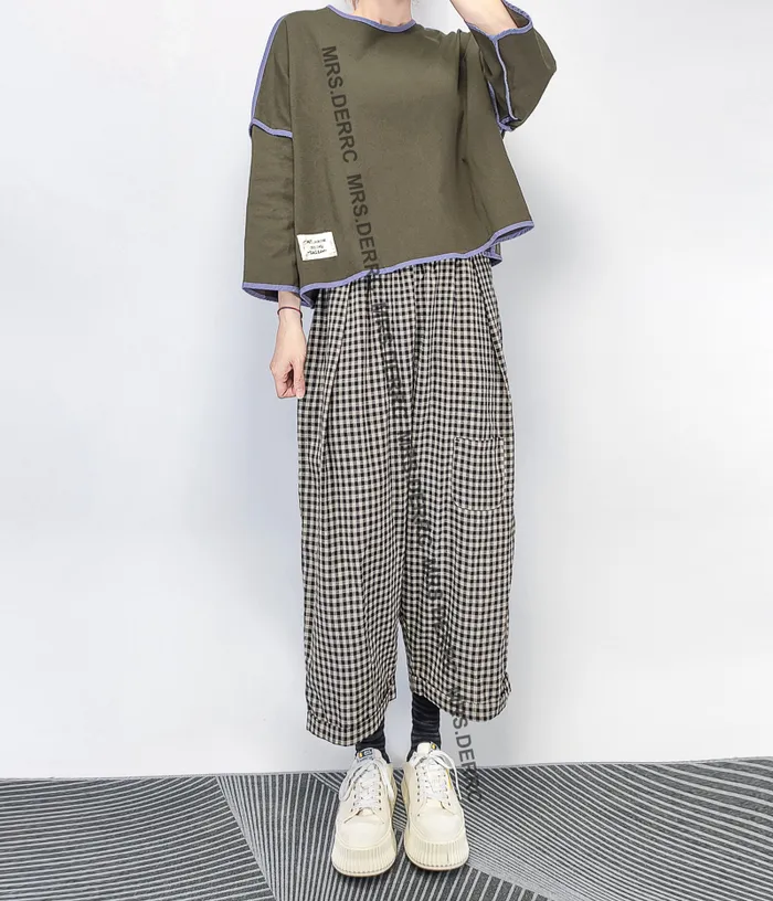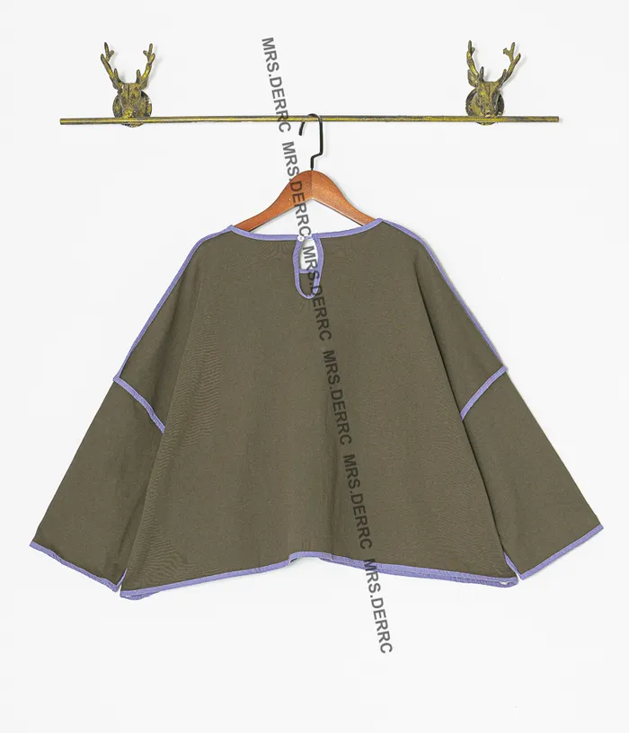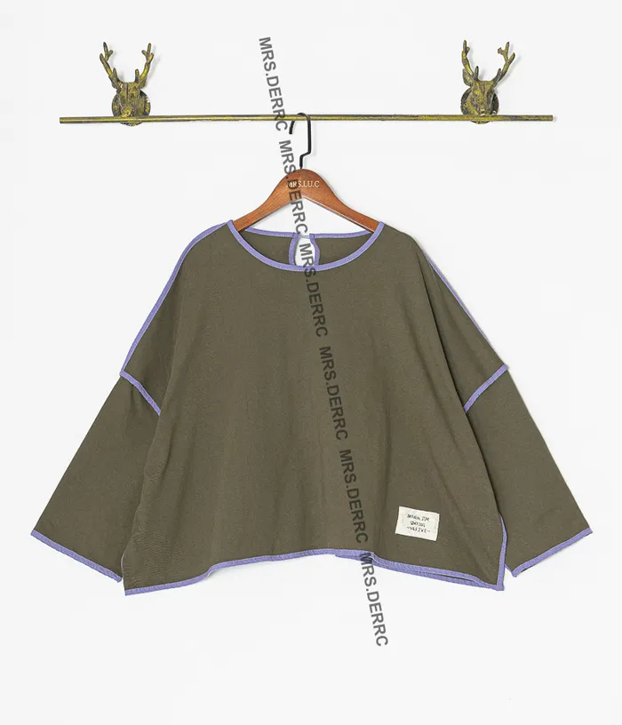 棉質後釦外縫滾邊短版寬鬆短版上衣(綠色)