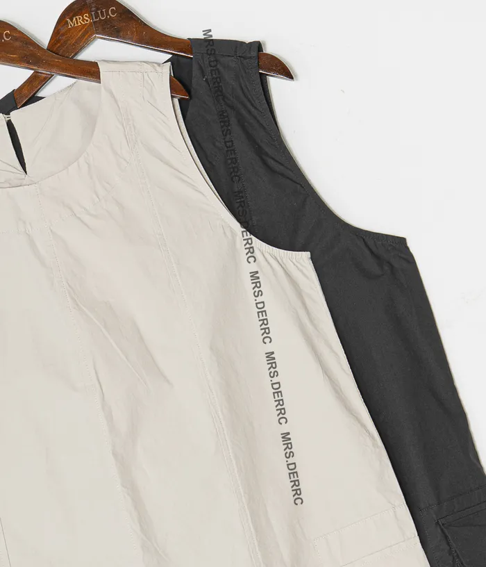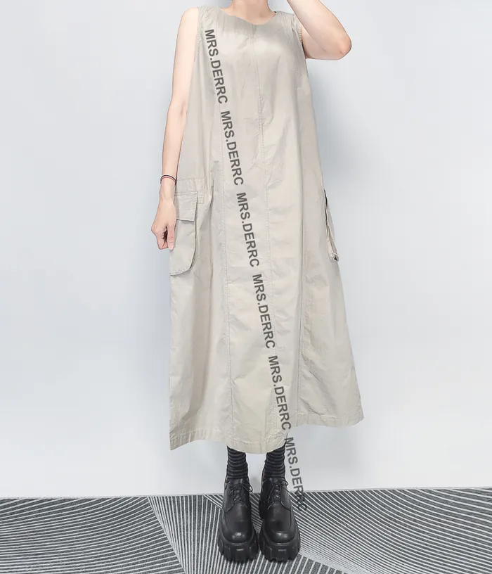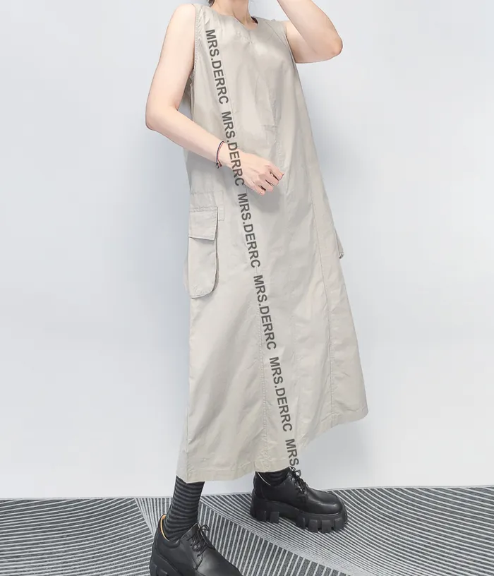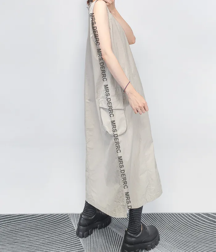 棉質後開釦無袖剪裁口袋洋裝(杏色)