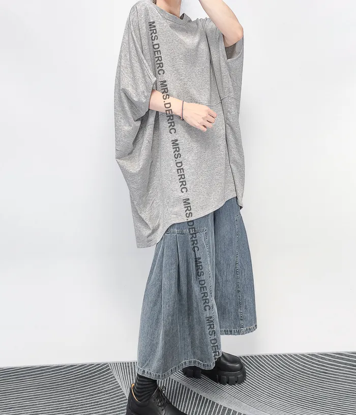 棉混紡拚接寬鬆簡約上衣(淺灰)