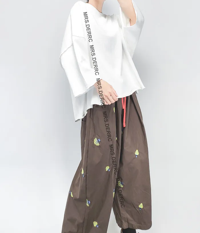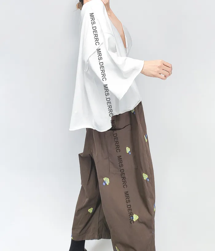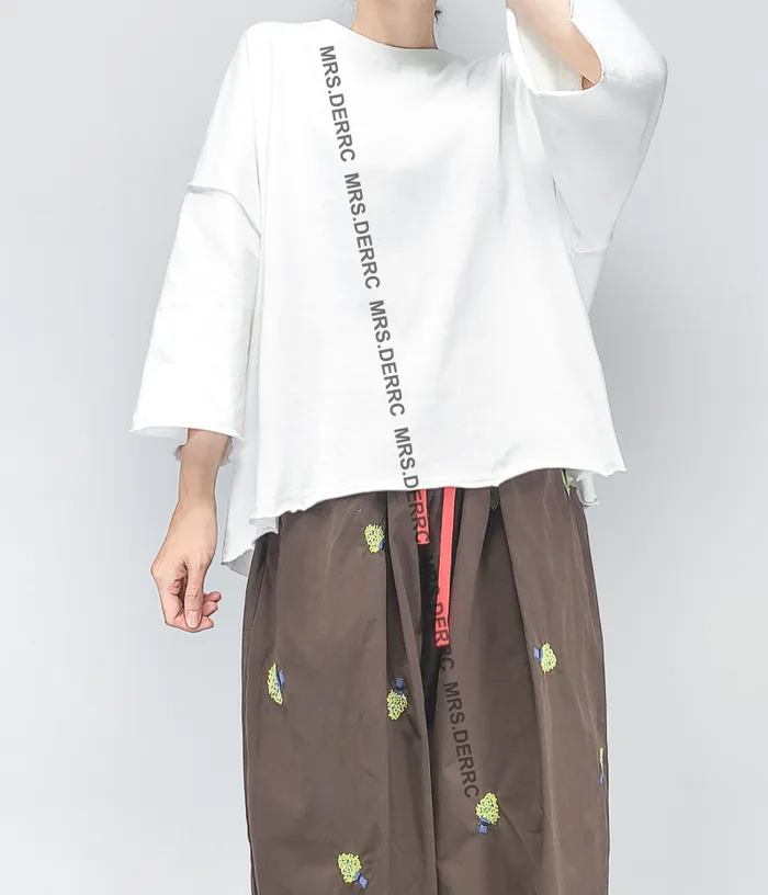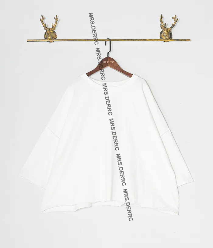 棉質寬袖拼接捲邊簡約上衣(白色)