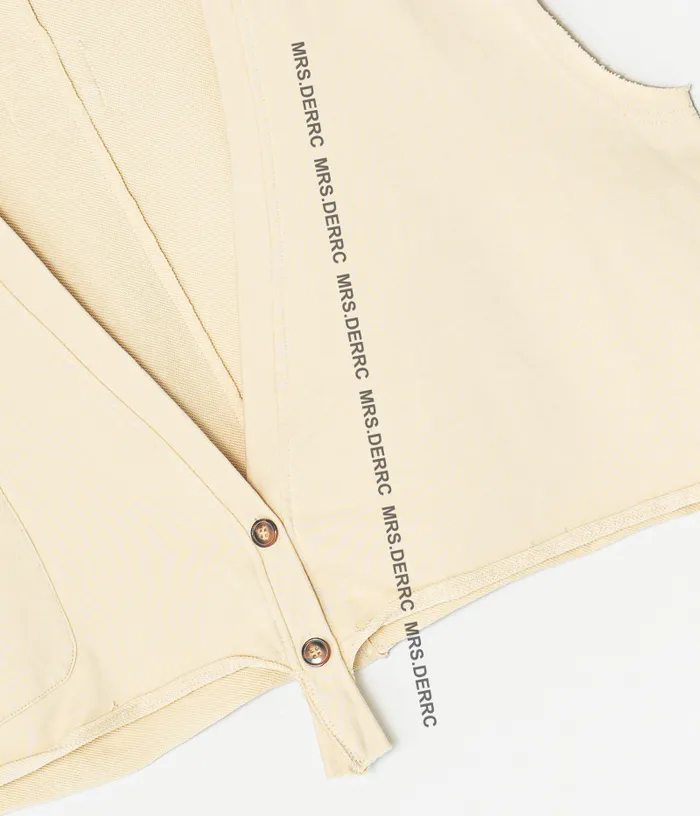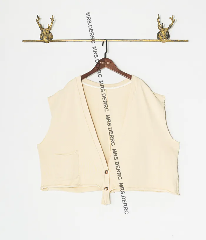棉質捲邊兩顆釦造型一個口袋背心(杏色)