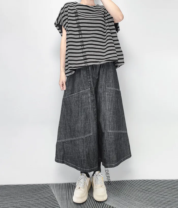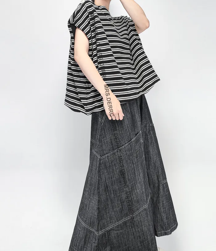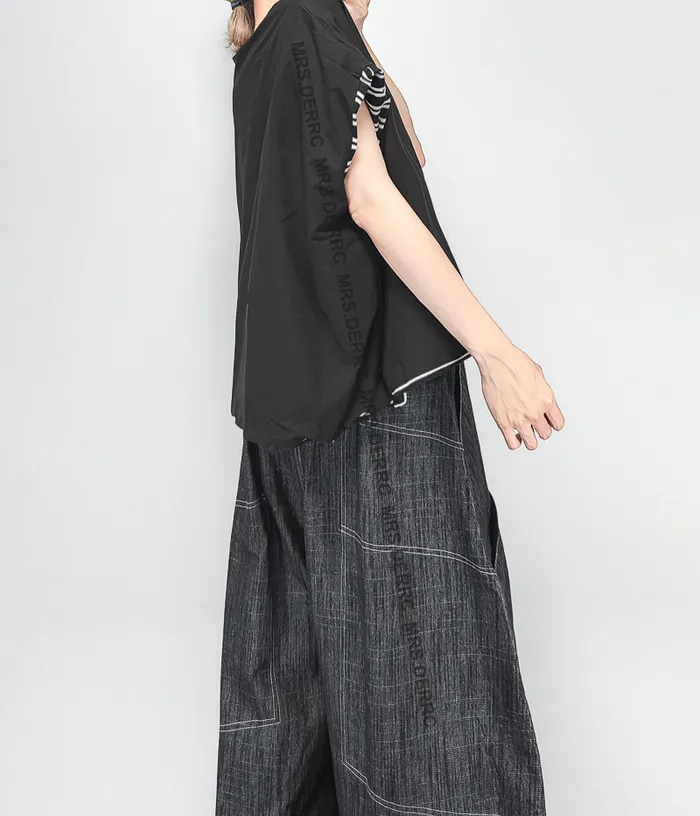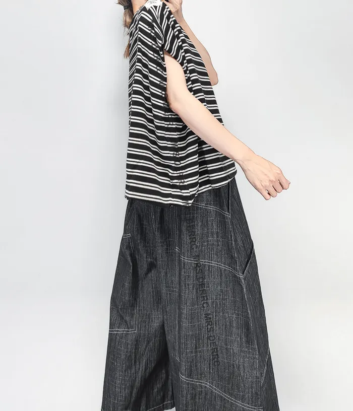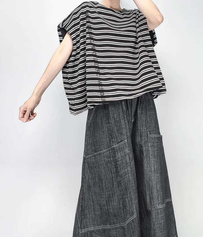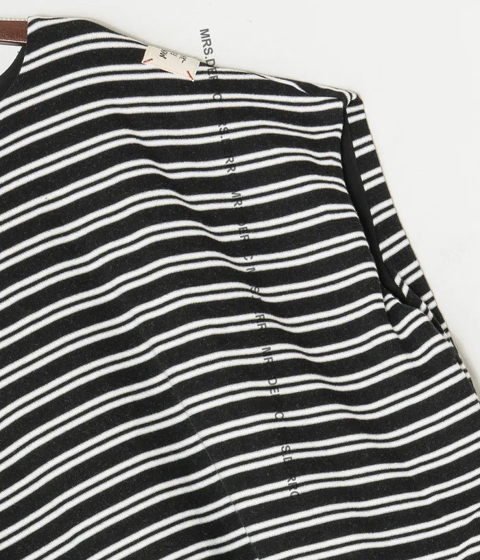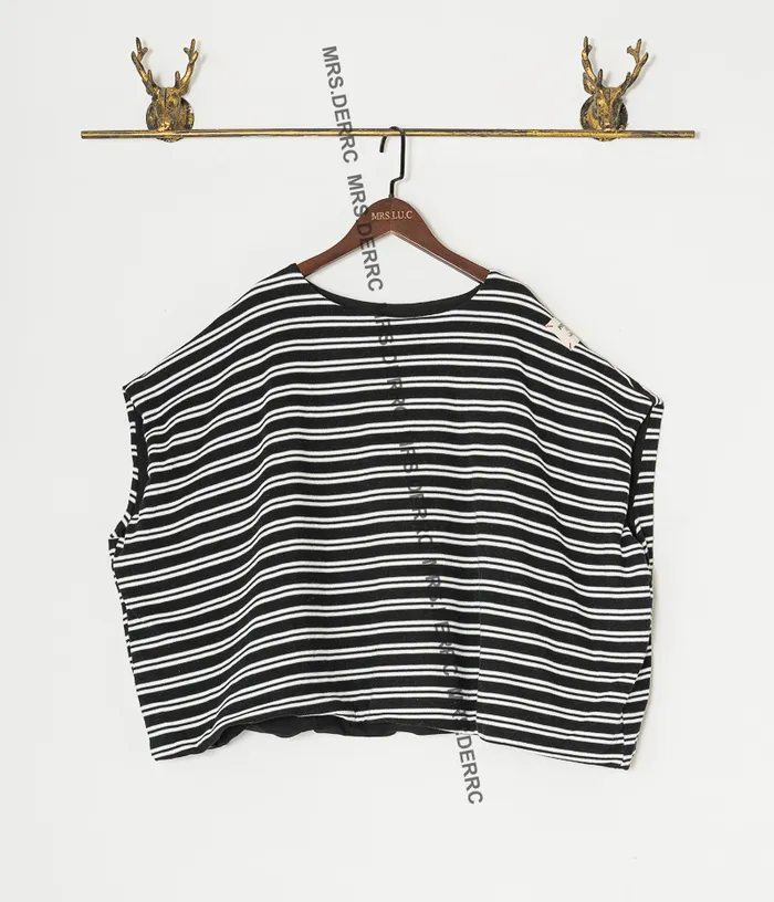棉質雙面穿包肩條紋寬鬆上衣(黑條)