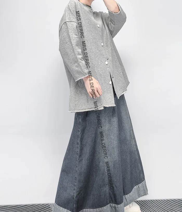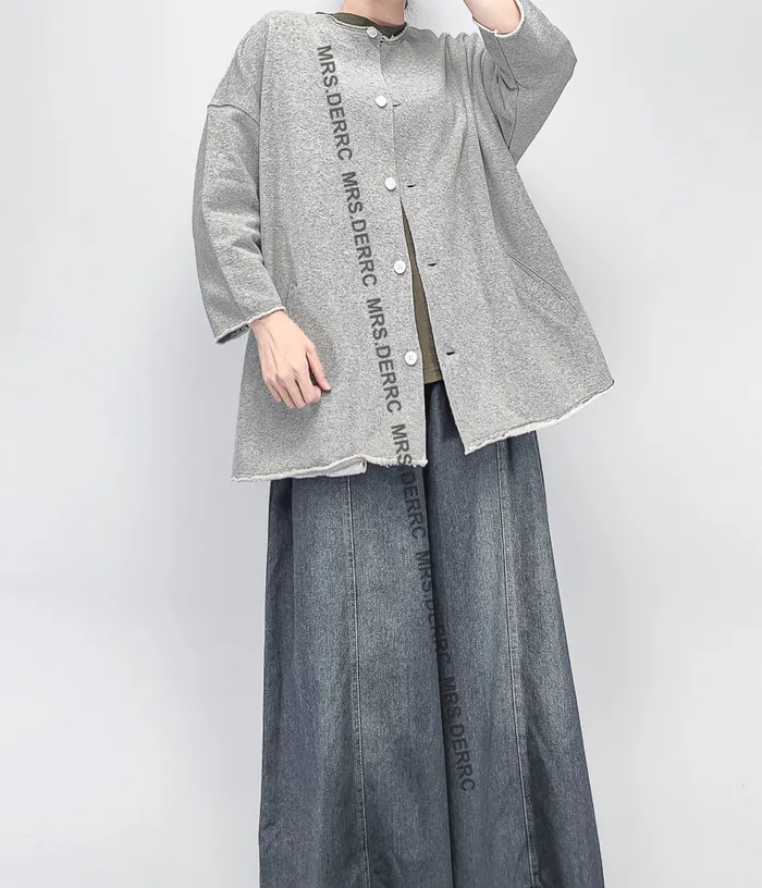 棉質白釦不收邊口袋外套(淺灰)