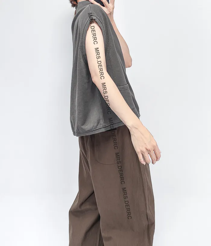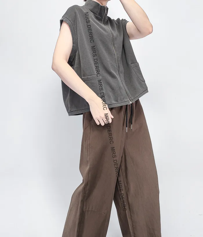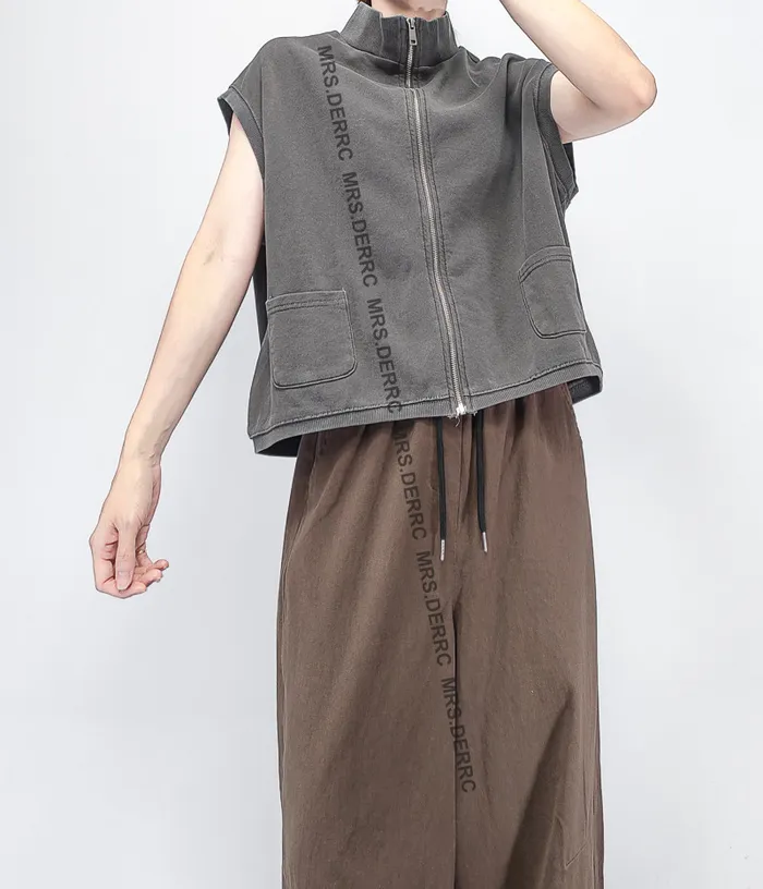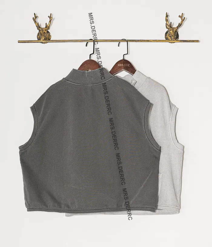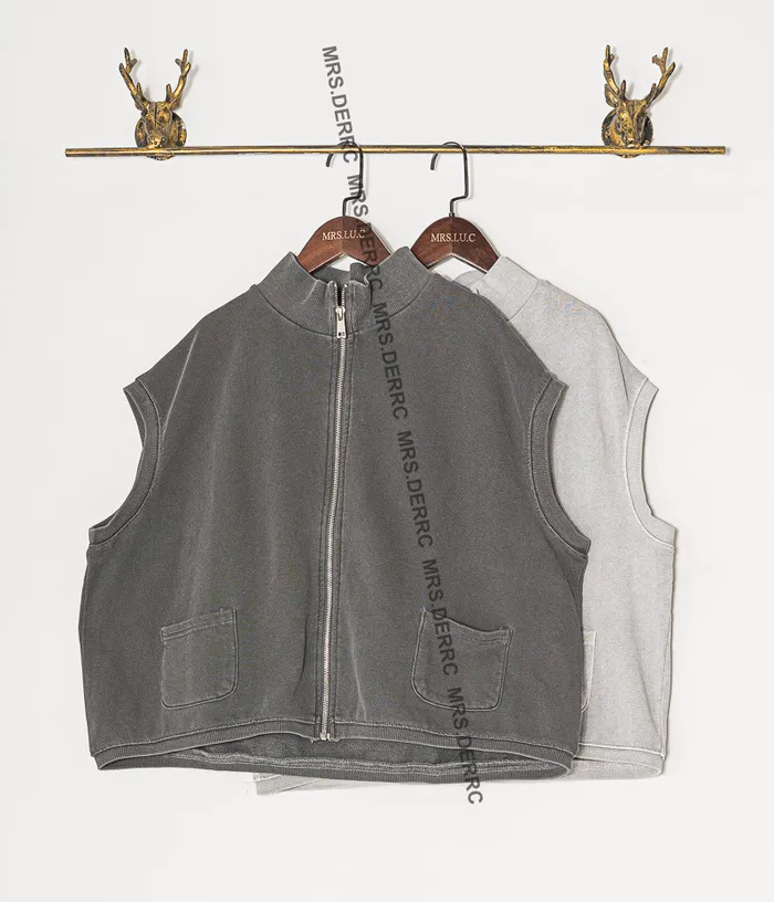 棉質水洗立領拉鍊小口袋背心(深灰)