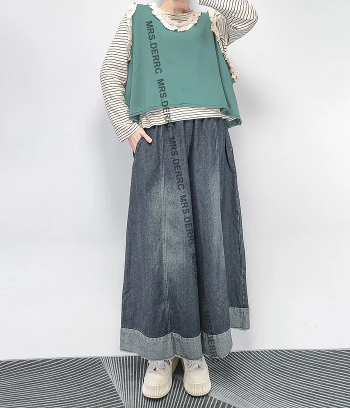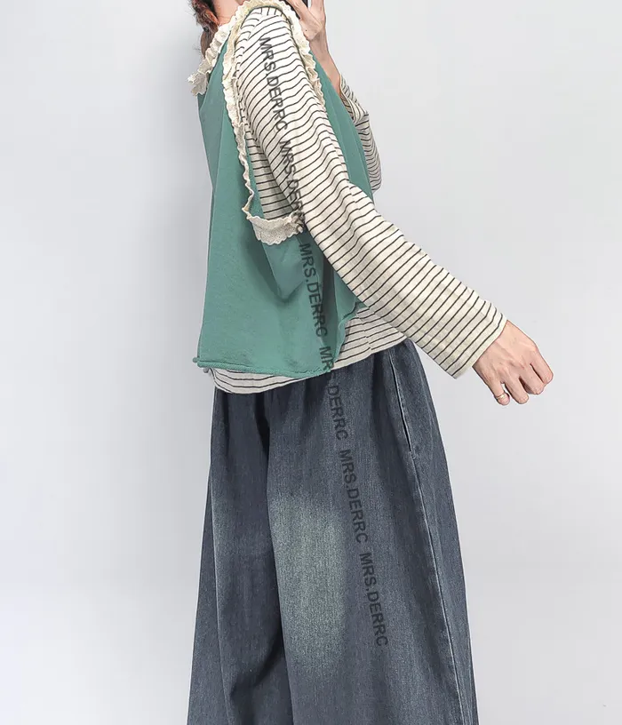 棉質簍空布蕾絲滾邊寬鬆短版背心(湖水綠)