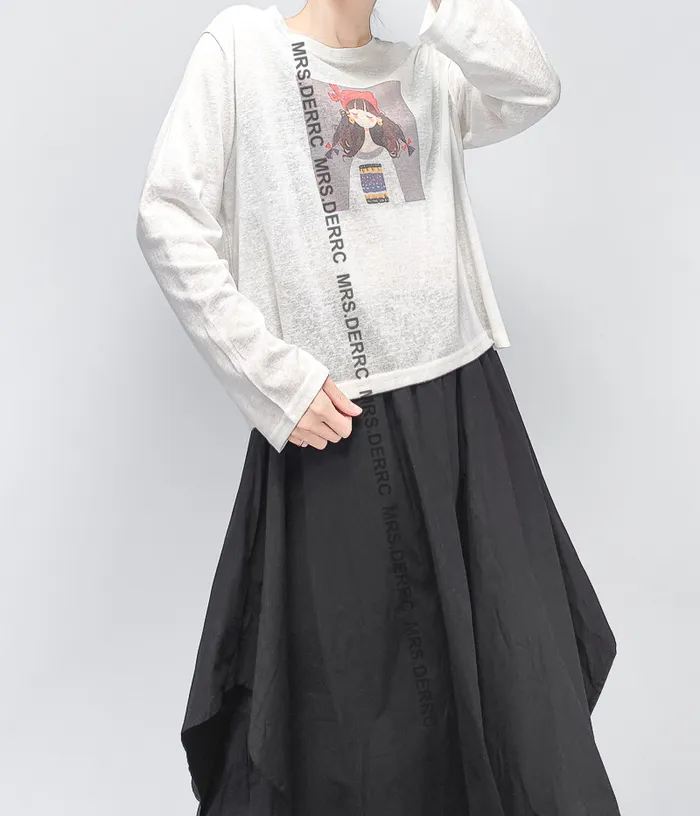棉質軟料水洗印花紅帽女孩上衣(白色)