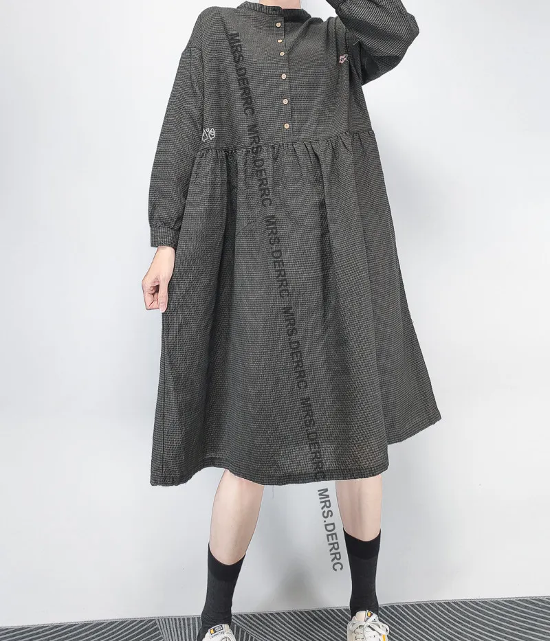 棉質微皺小格半開釦口袋洋裝(綠格)