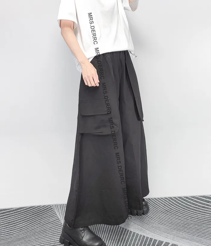 挺布造型拼鬆緊腰休閒口袋褲(黑色)
