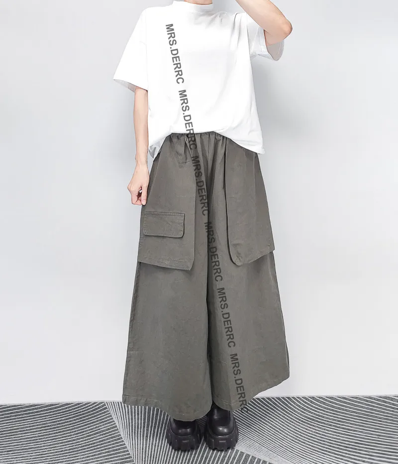 挺布造型拼鬆緊腰休閒口袋褲(灰綠)