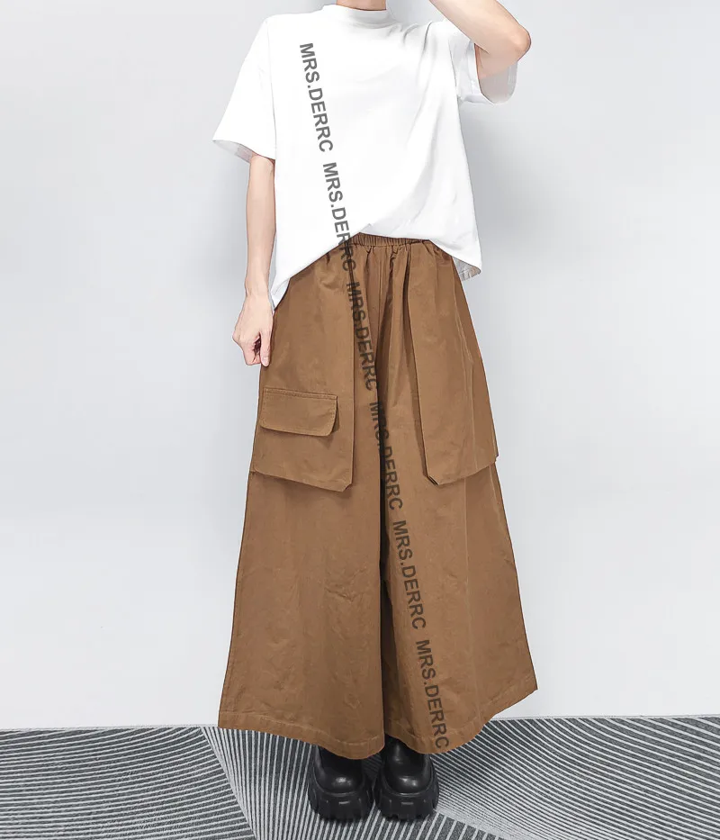挺布造型拼鬆緊腰休閒口袋褲(咖色)