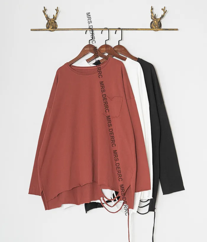 棉質割破造型不收邊口袋上衣(黑色)