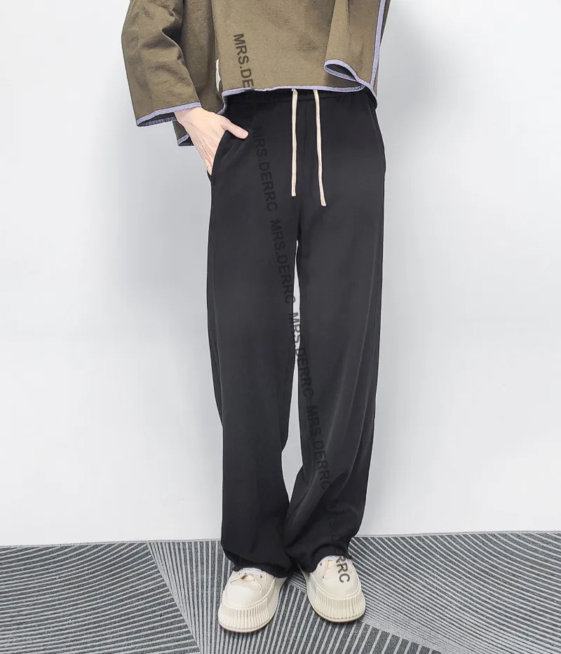 棉質白抽繩褲腳不收邊口袋褲(黑色)