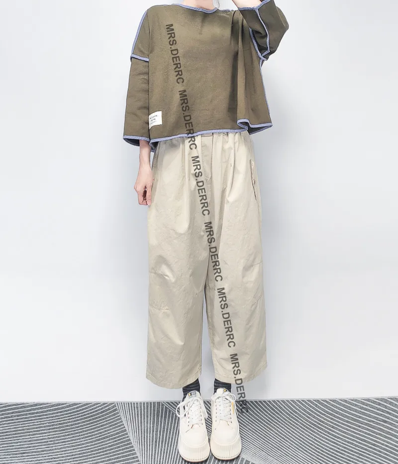 棉混紡縫線剪裁休閒口袋褲(杏色)