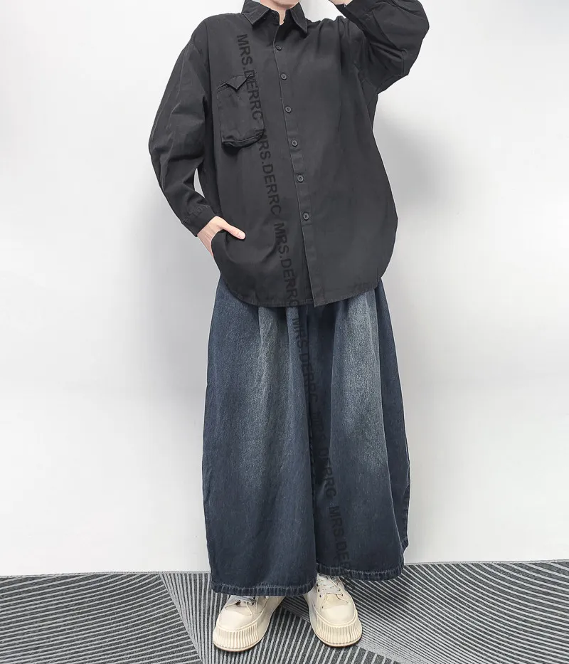 棉混紡挺布開岔立體口袋襯衫(黑色)