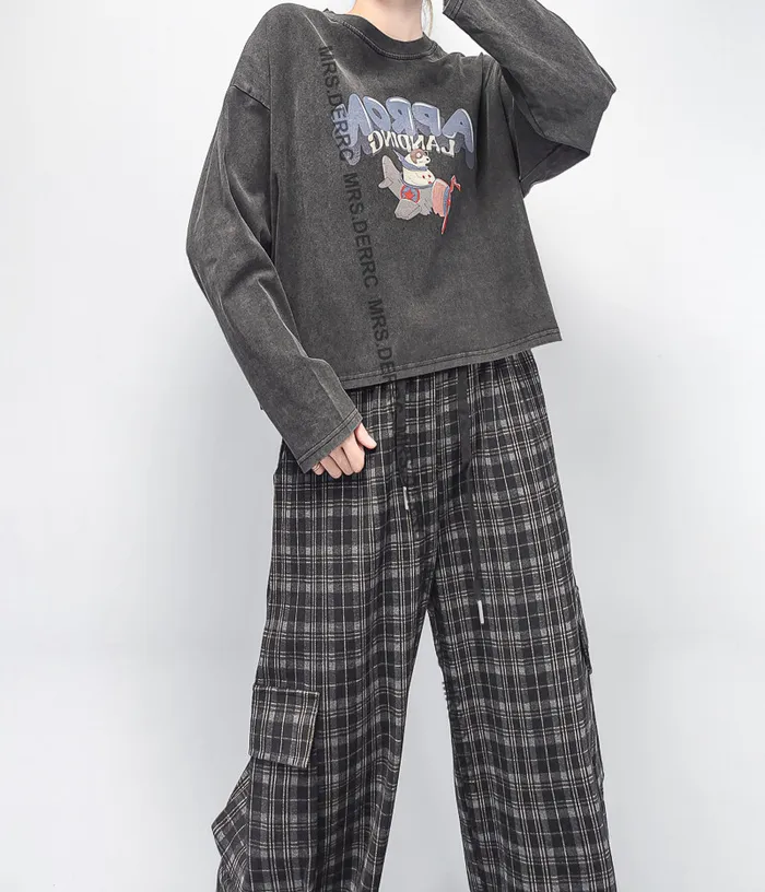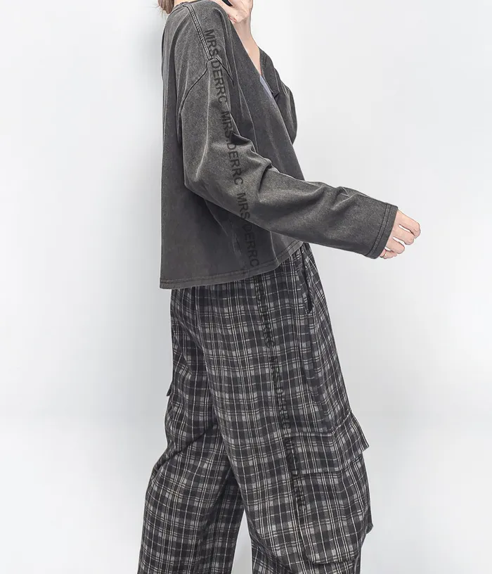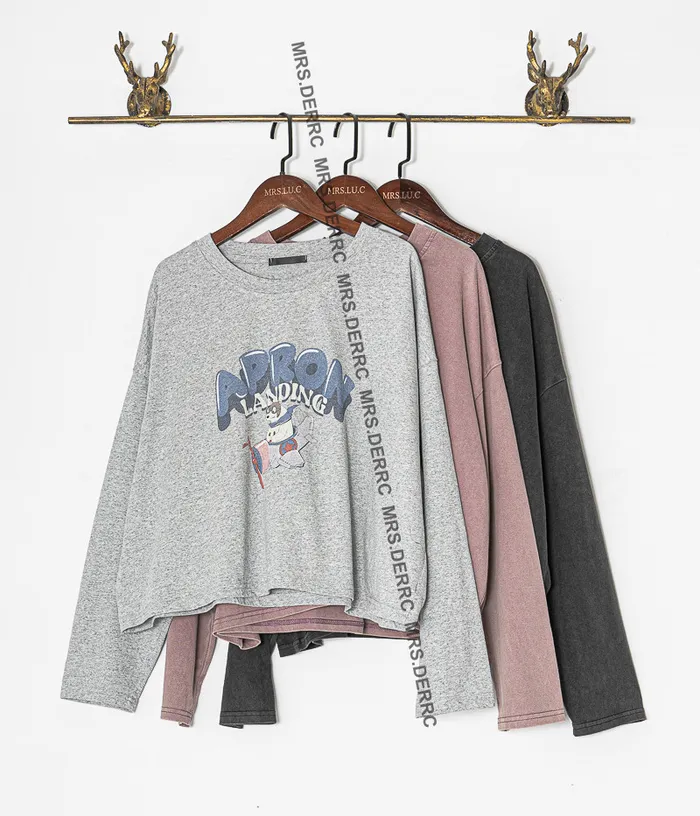 棉質水洗熊熊飛行員短版上衣(深灰)