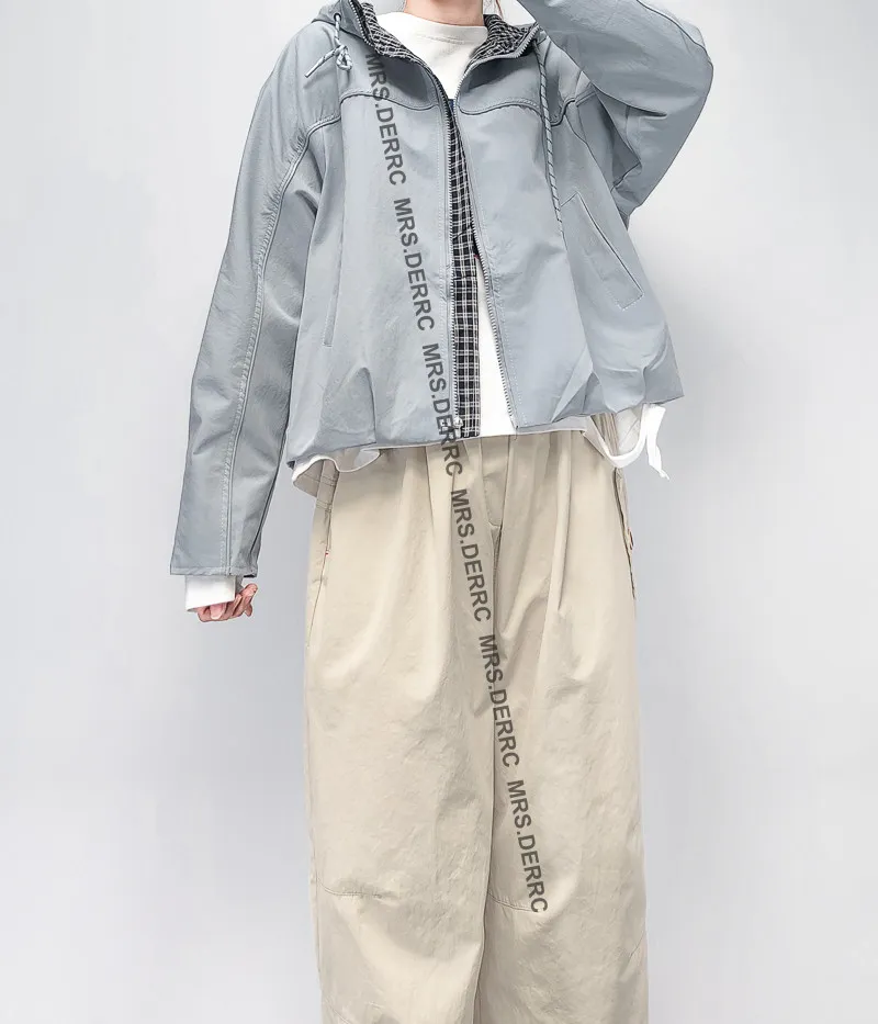 混紡格紋拼接連帽雙層口袋外套(淺灰)