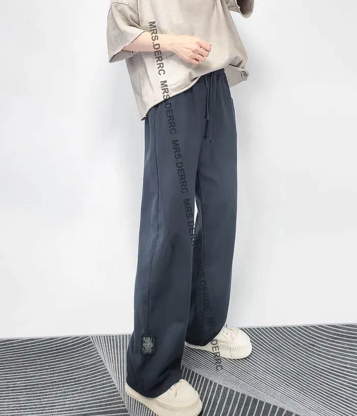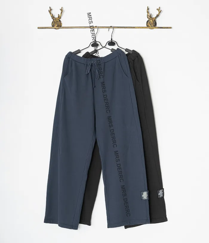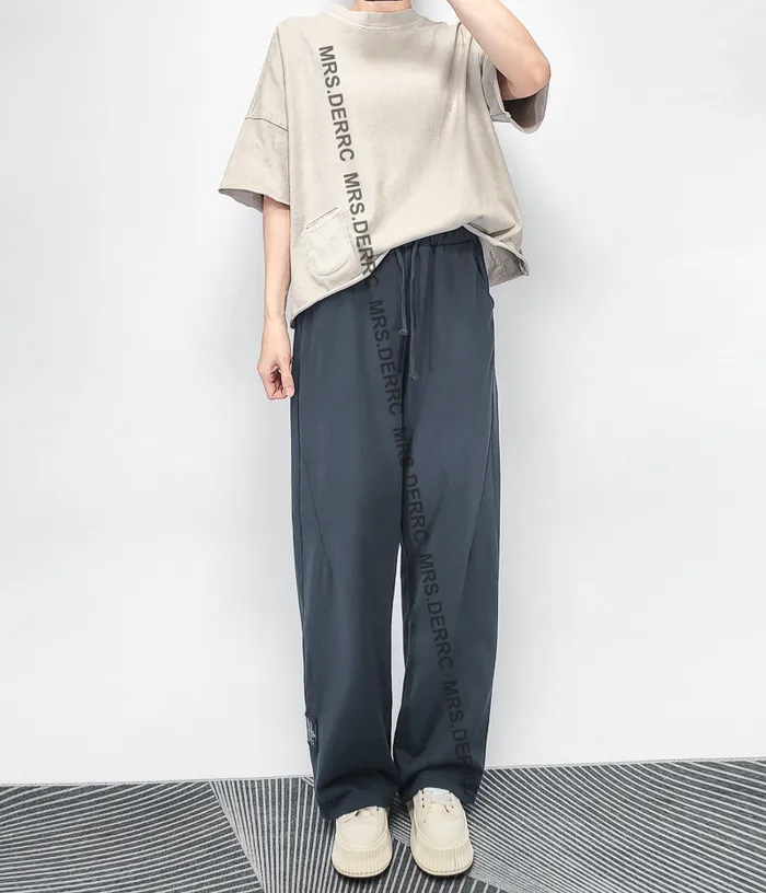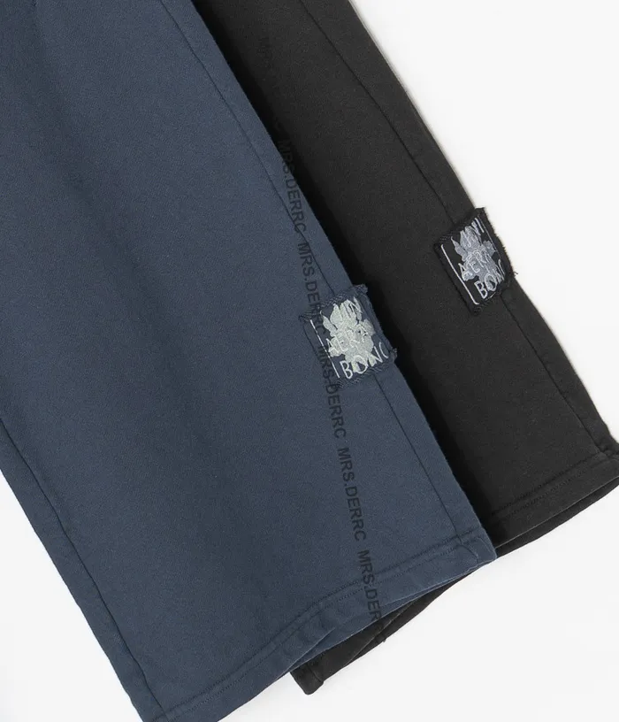棉質小布標鬆緊抽繩休閒口袋褲(藍色)