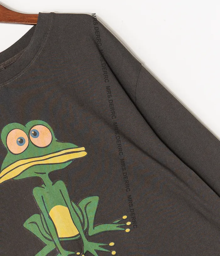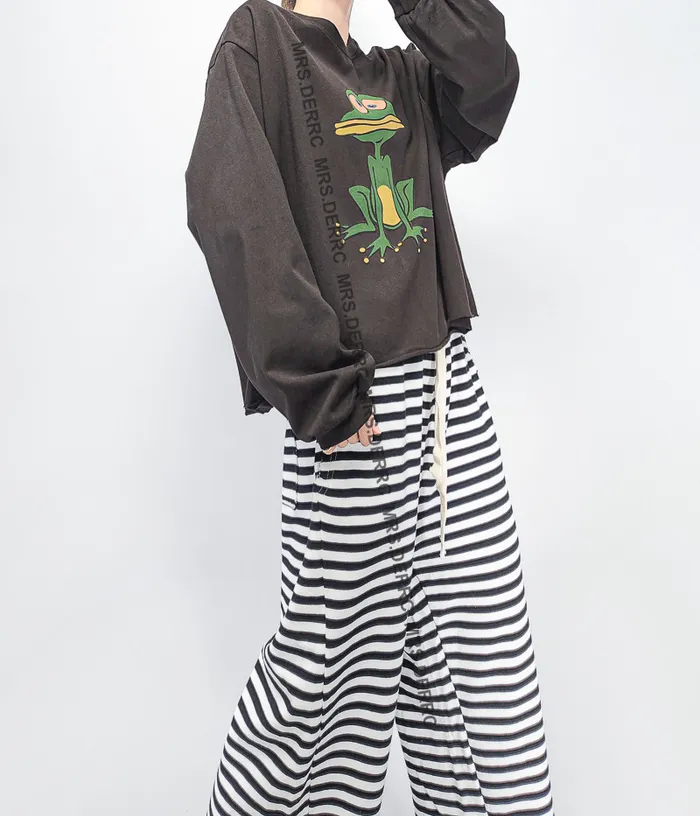 棉質不收邊蛙蛙短版上衣(咖灰色)