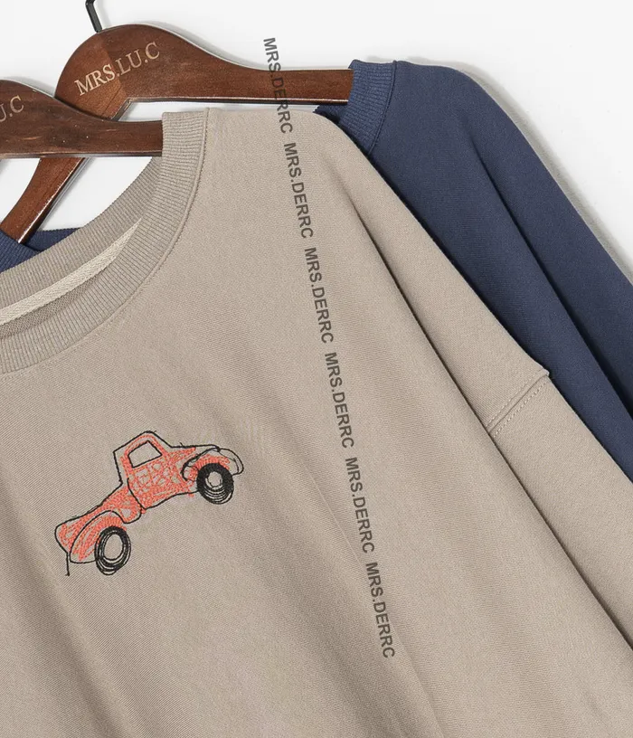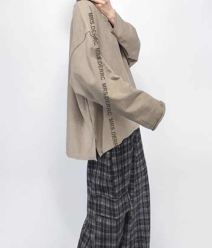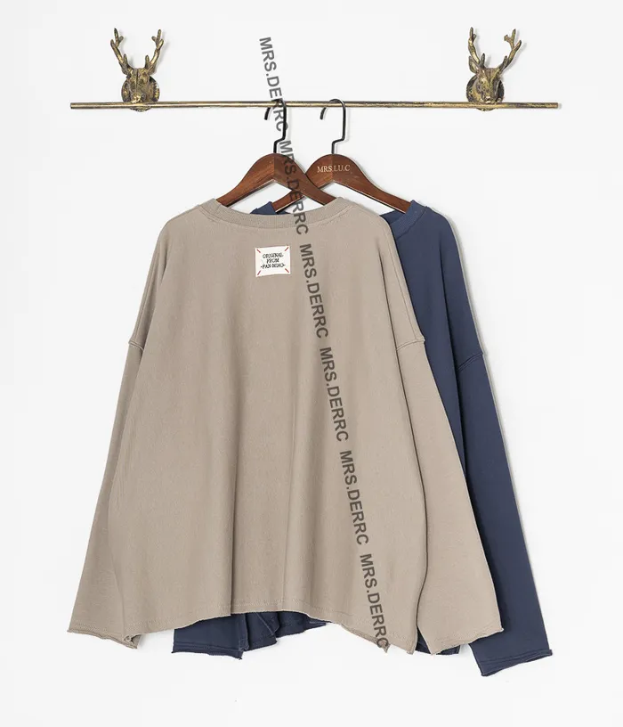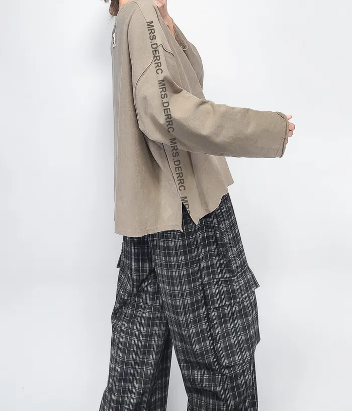 棉質刺繡小皮卡不收邊上衣(卡其)
