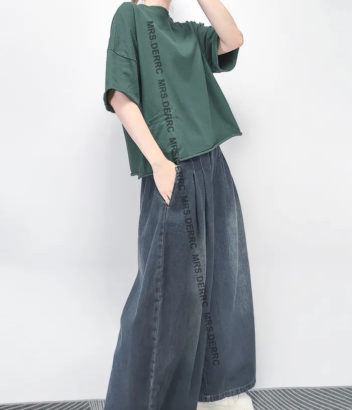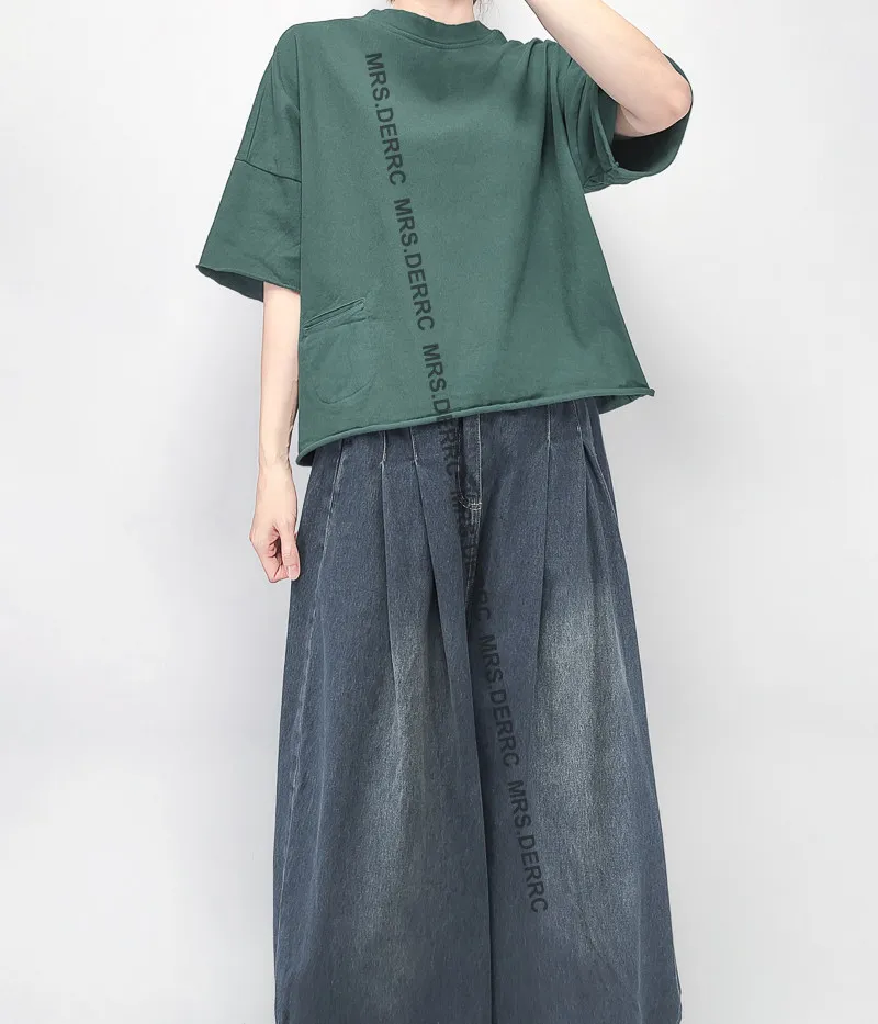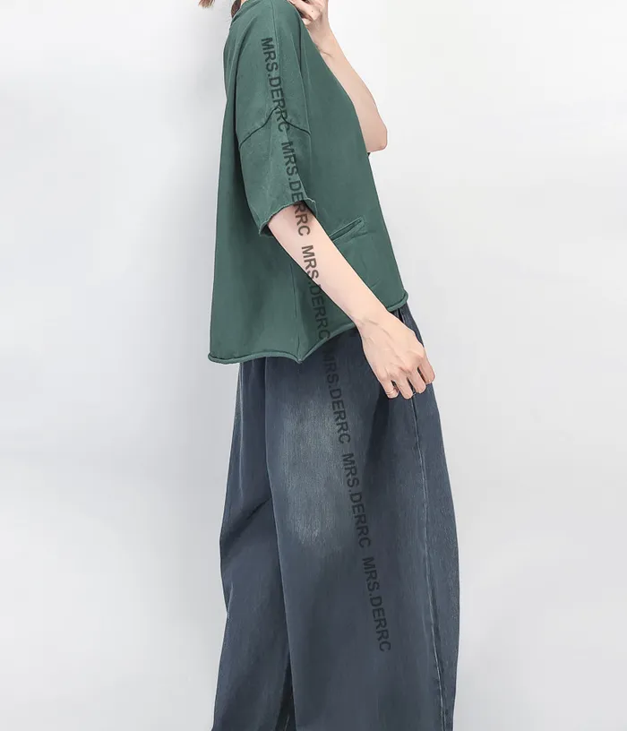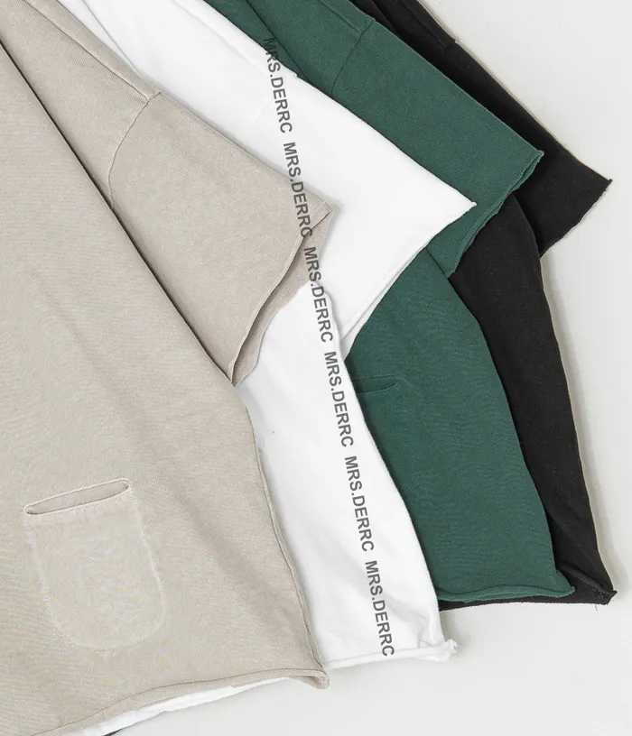 棉質水洗捲邊小口袋布標上衣(綠色)
