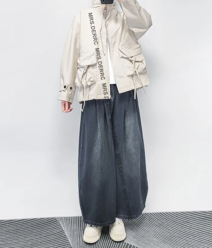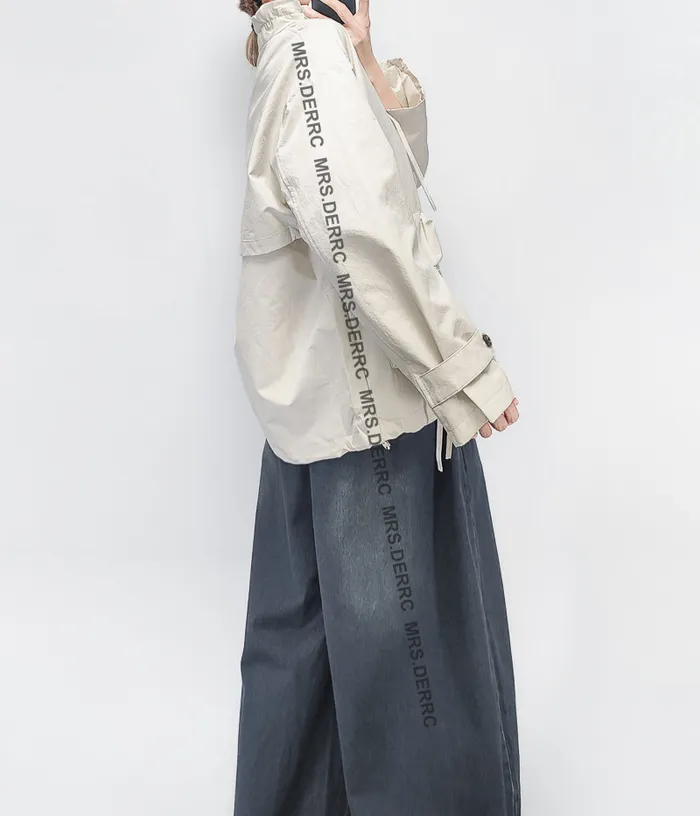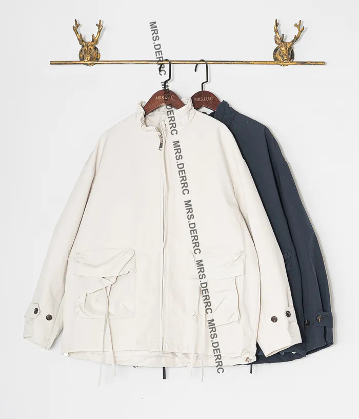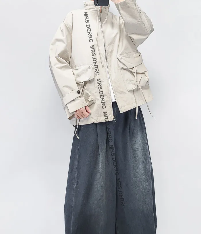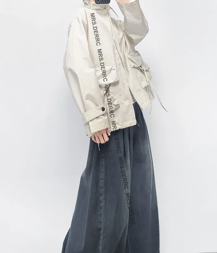 領綁帶造型立體口袋拉鍊外套(杏色)