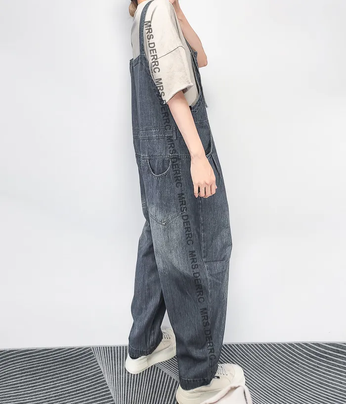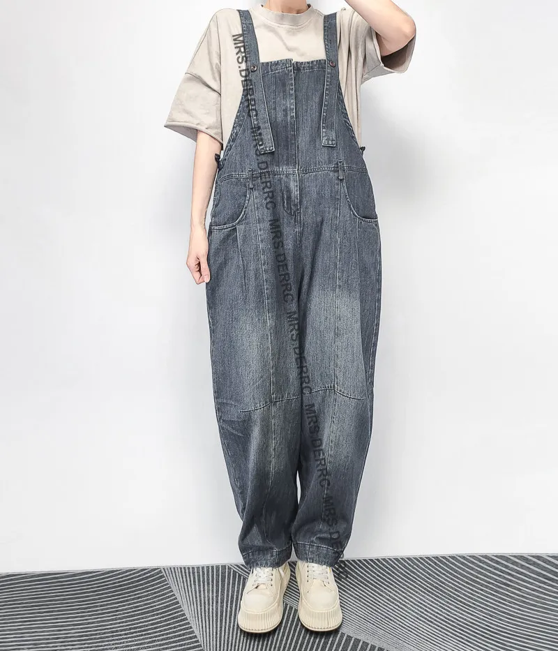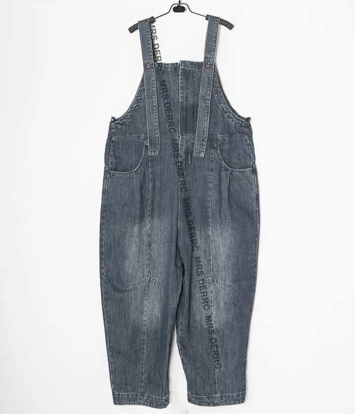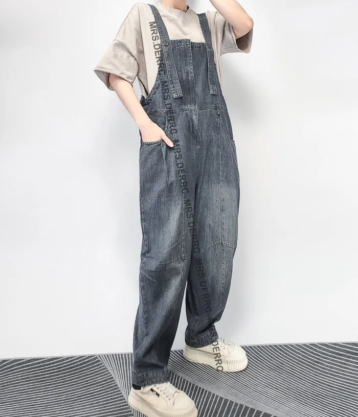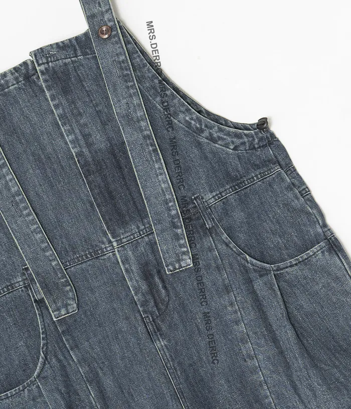 水洗牛仔刷色半拉鍊口袋吊帶褲