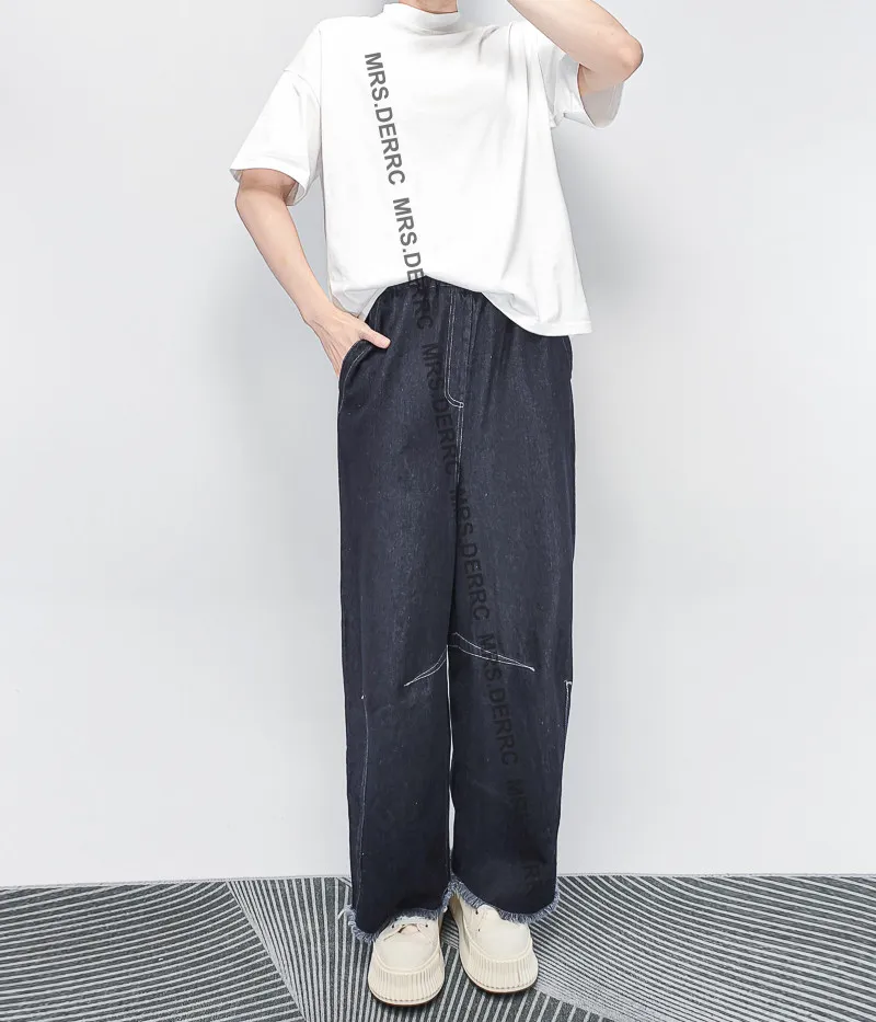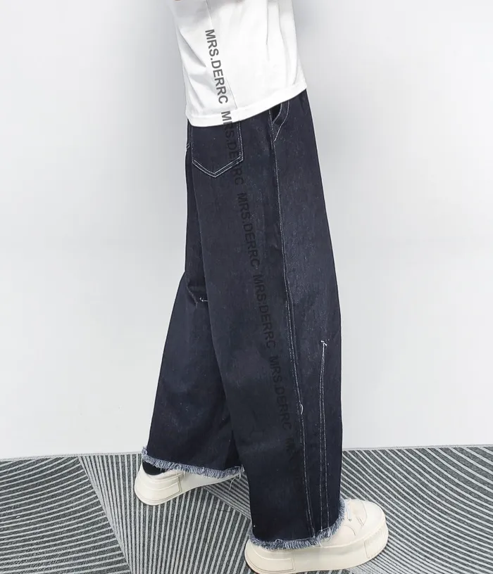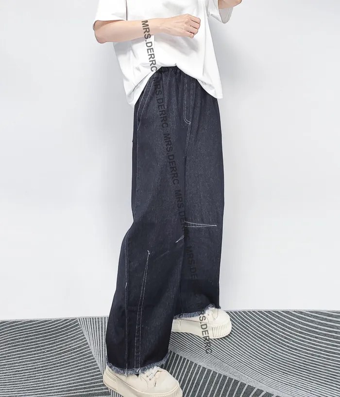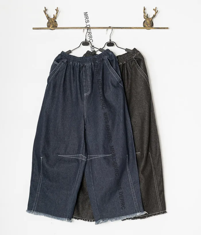 挺布牛仔褲腳不收邊口袋褲(內裡薄磨毛)(藍色)