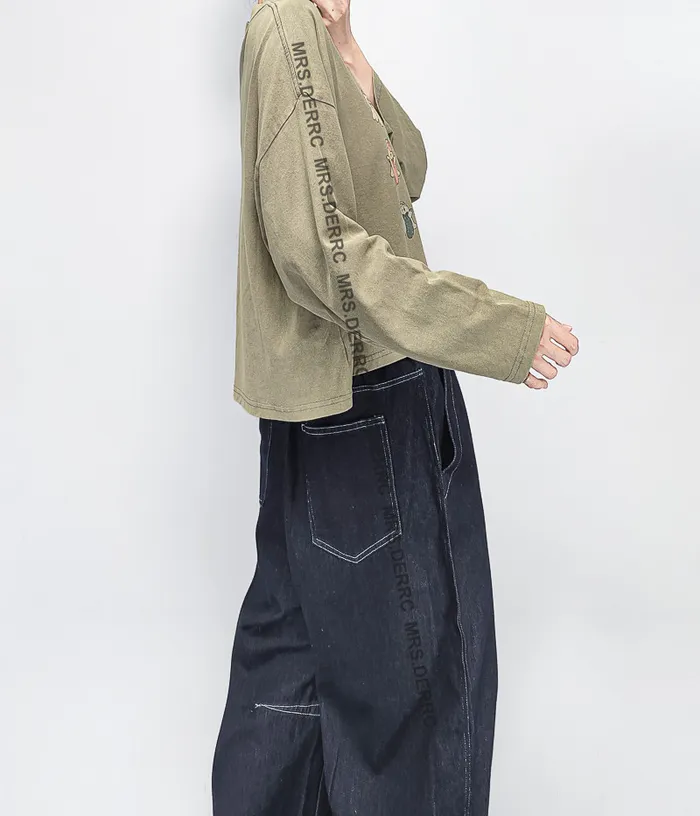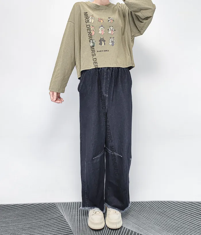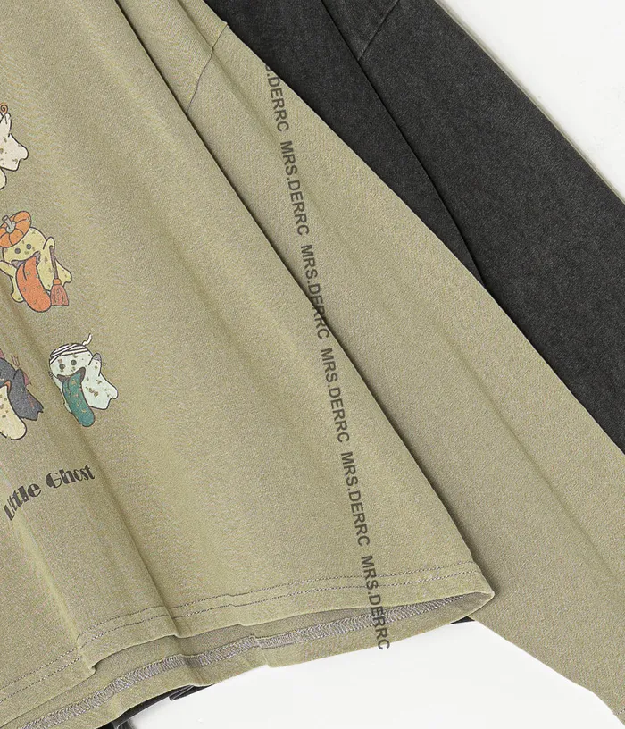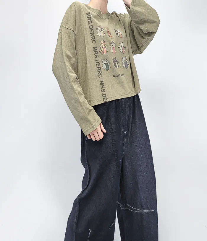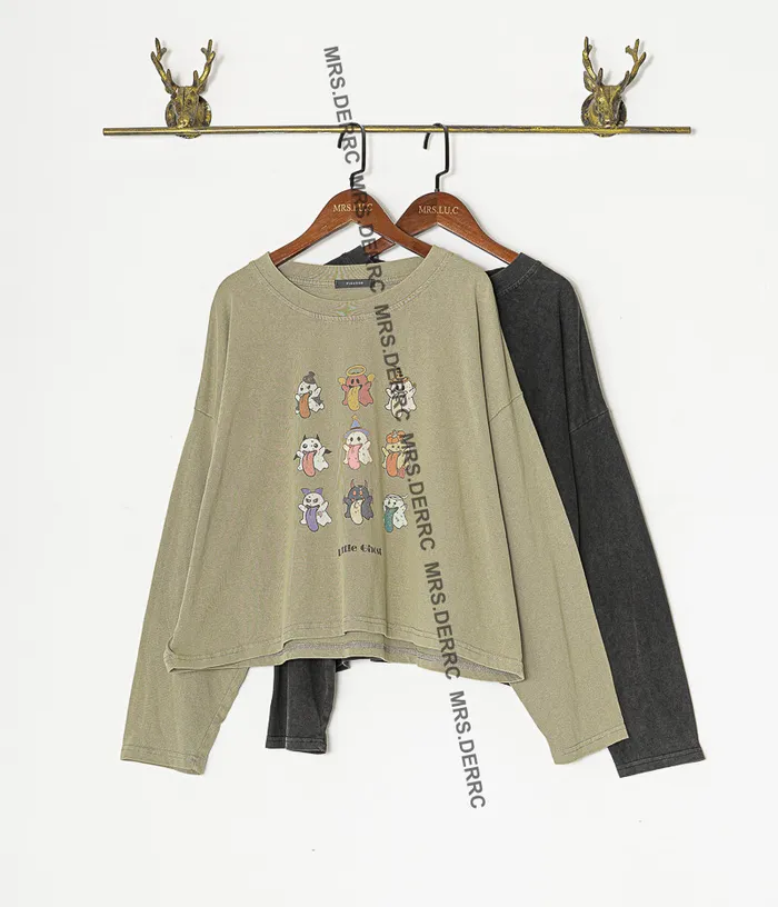 棉質水洗小幽靈短版上衣(淺灰綠)