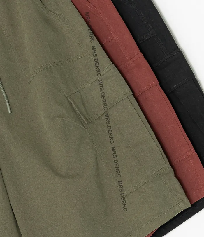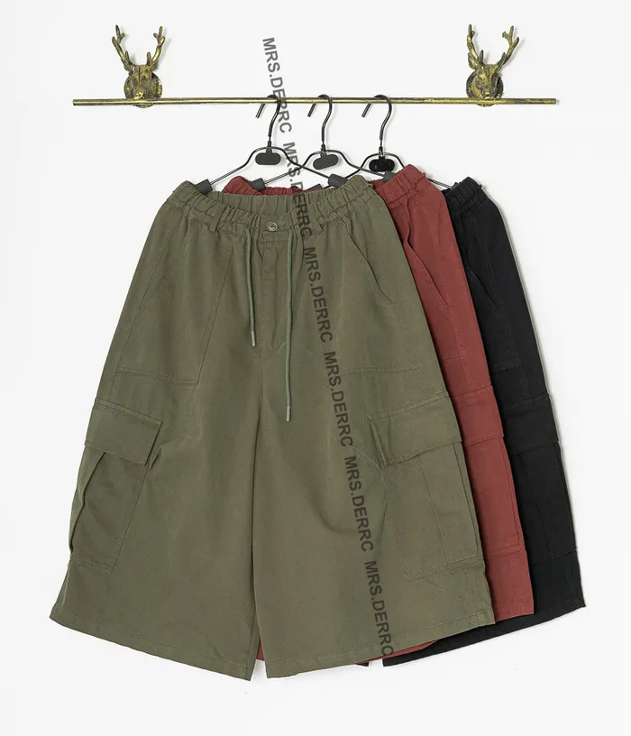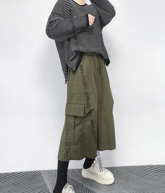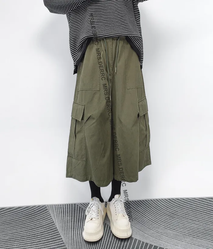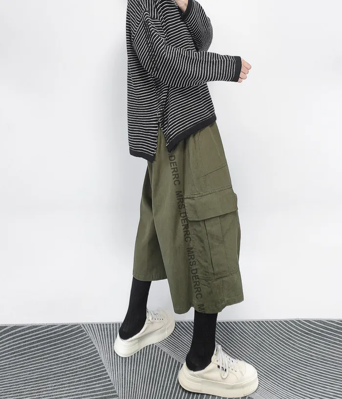 棉質造型腰頭開釦鬆緊口袋七分褲(綠色)
