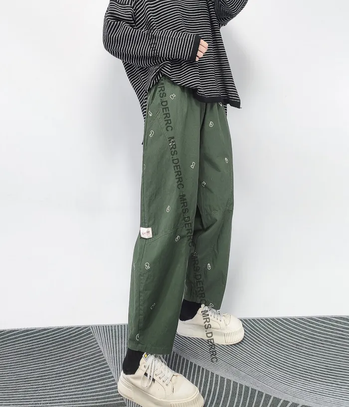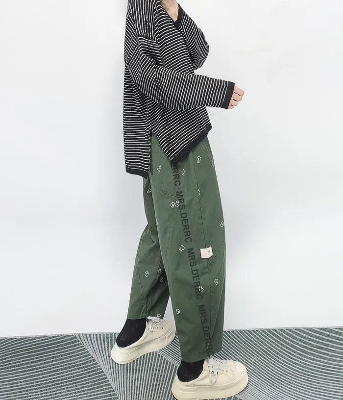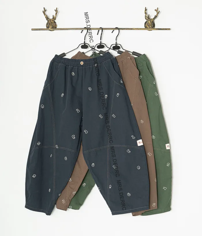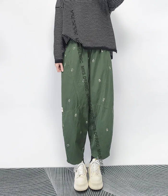 棉混紡鬆緊腰剪裁泡泡數字口袋褲(綠色)