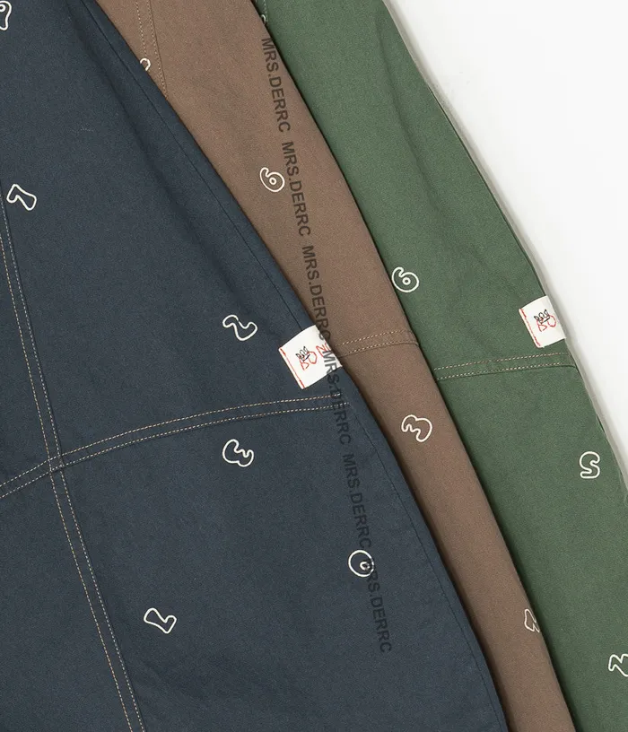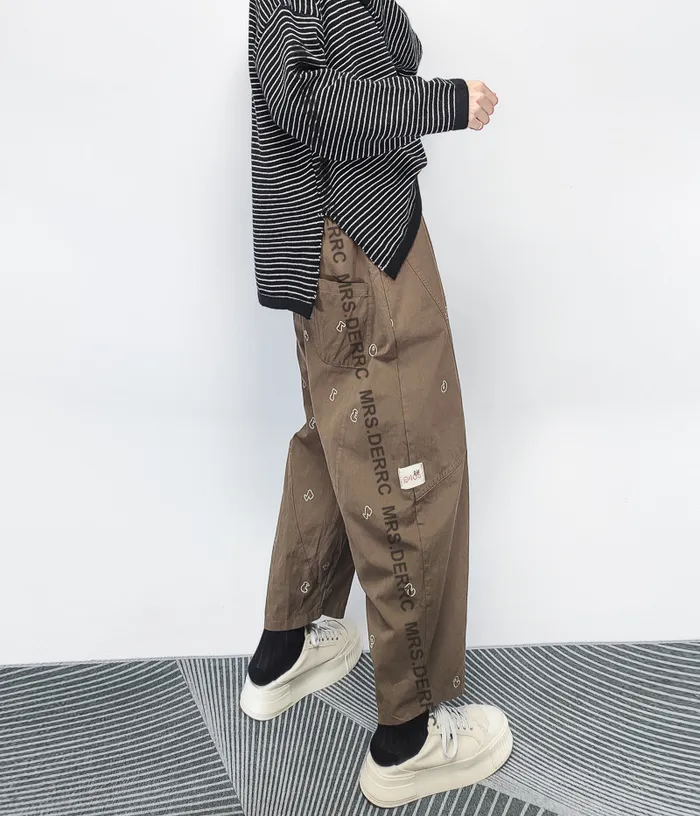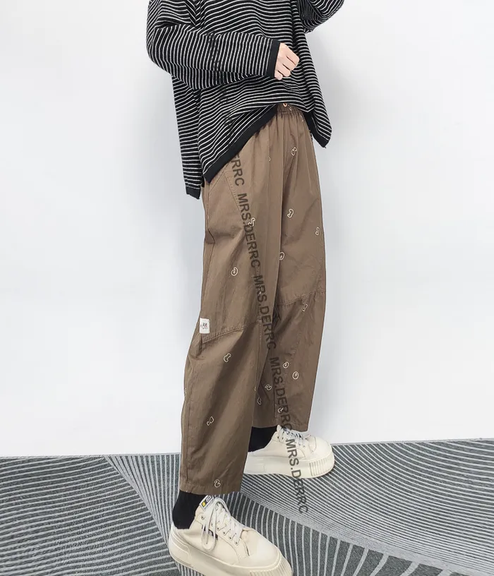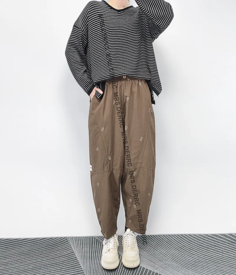 棉混紡鬆緊腰剪裁泡泡數字口袋褲(咖色)