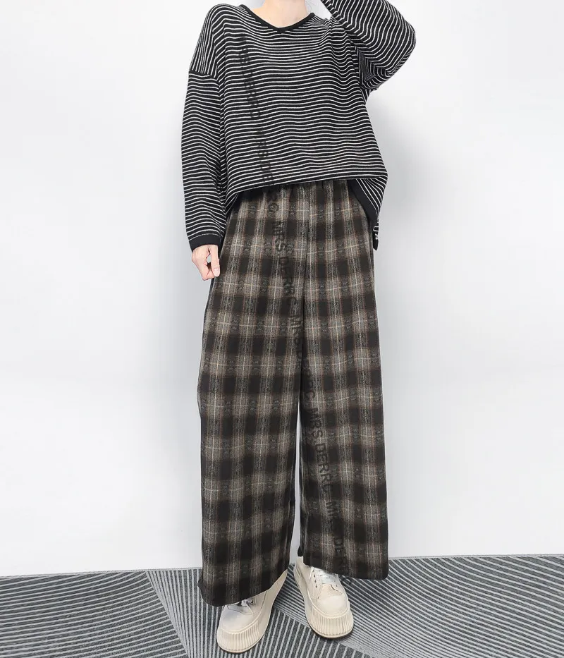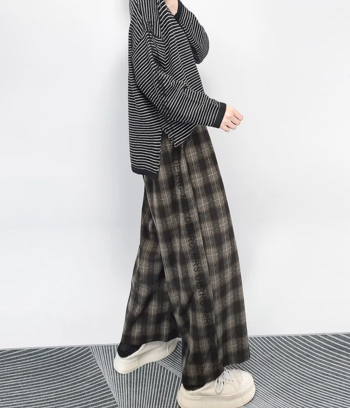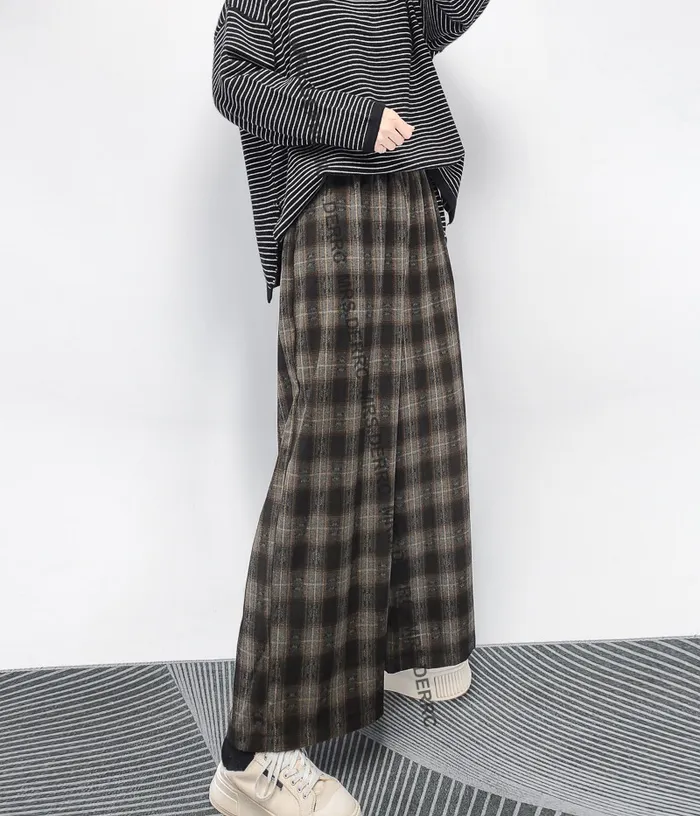 棉混紡垂墜薄毛呢格紋口袋褲(灰黑格)