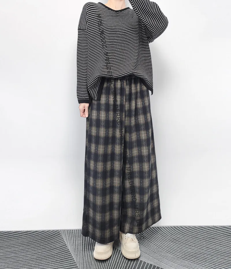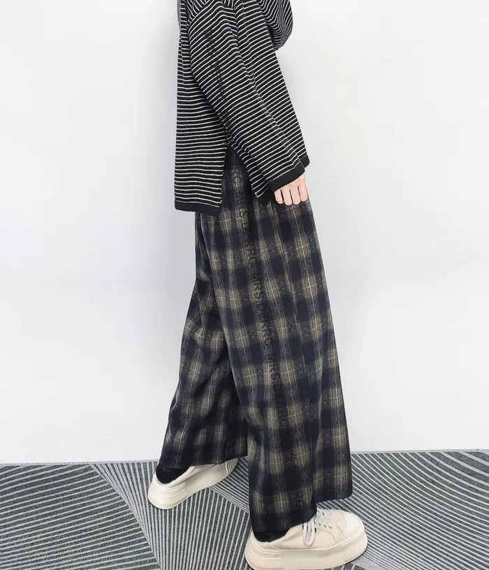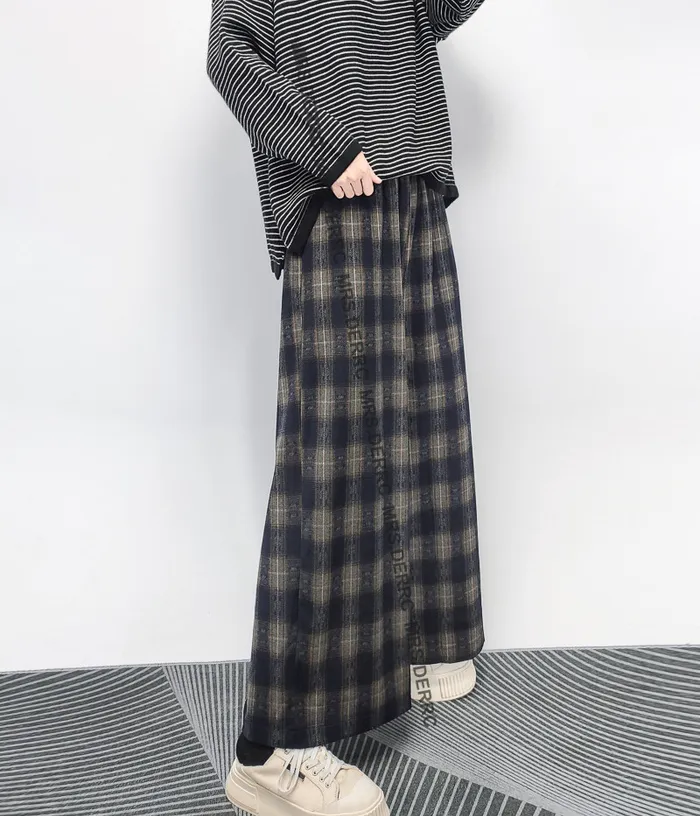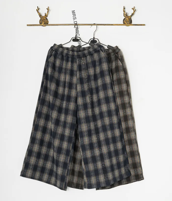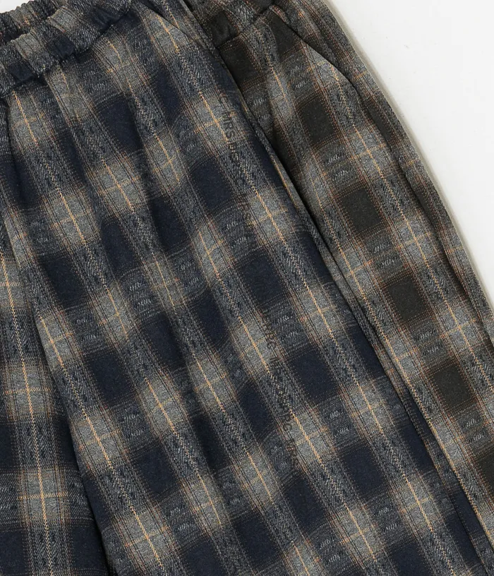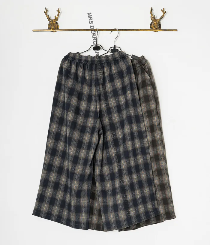 棉混紡垂墜薄毛呢格紋口袋褲(灰藍格)