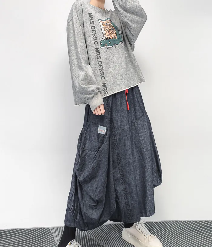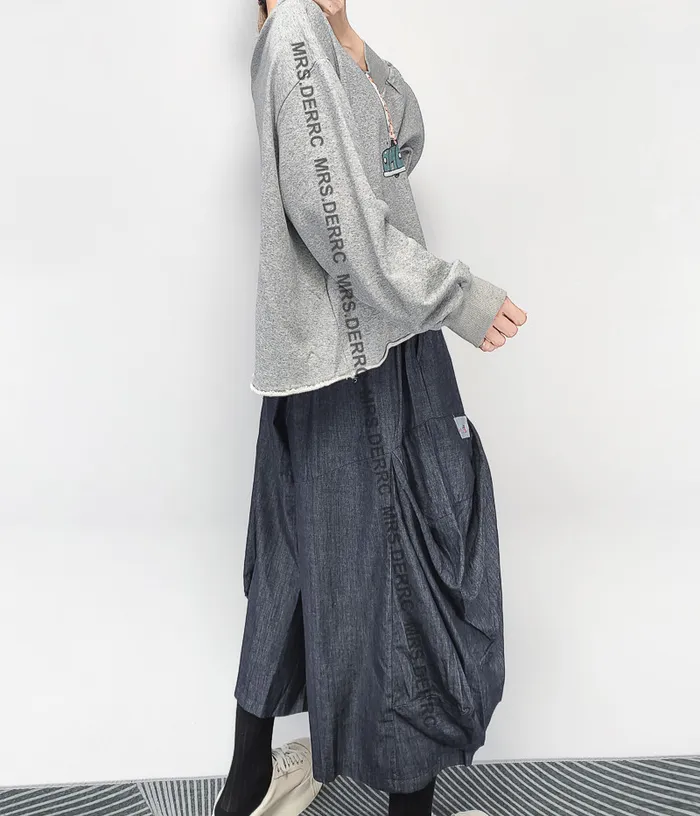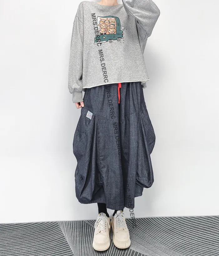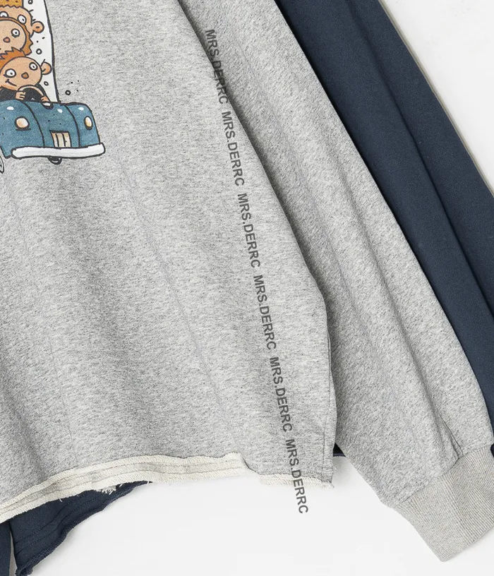 棉混紡捲邊疊疊樂印花上衣(淺灰)